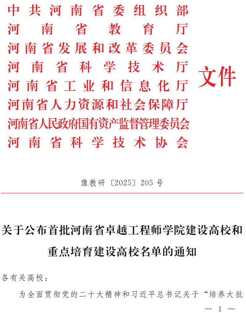 为全面贯彻党的二十大精神和习近平总书记关于“培养大批卓越工程师”的重要批示指示精神,落实立德树人根本任务,大力发展交叉学科,解决专业学位研究生产教融合问题,河南省启动卓越工程师新葡京娱乐城App 建设高校遴选工作。本次全省共遴选5所高校作为建设单位,4所高校作为重点培育建设单位,新葡京娱乐城App 此次入选是对新葡京娱乐城App 工程技术人才培养质量、服务国家及河南省战略能力的充分认可。