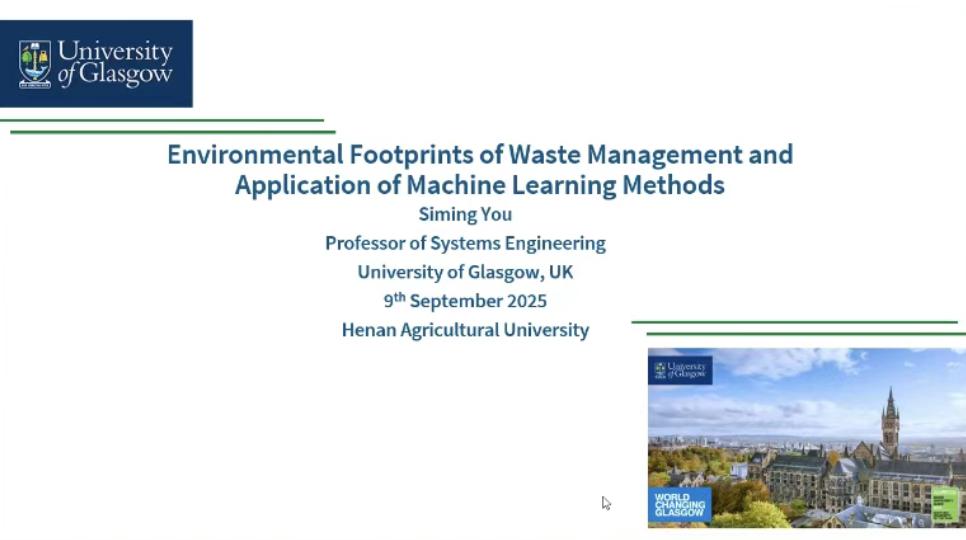 2025年9月9日,应农林废弃物生物转化与利用团队邀请,英国Glasgow大学Siming You教授为团队教师作学术报告。农林废弃物生物转化与利用团队全体老师参加了会议,会议由张志萍教授主持。