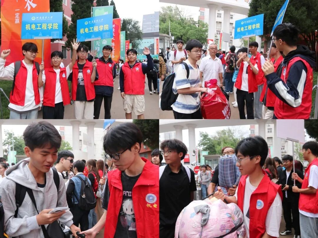 迎新当天清晨,校园已充满活力。辅导员、助班与志愿者早早到岗,报到点“机电迎新”主题展板醒目,引导牌整齐排列。志愿者分组行动:或在新葡京娱乐城App