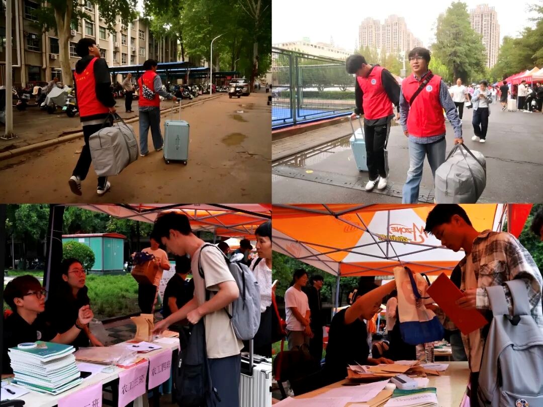 门口、公交站点迎接新生,主动接过行李箱;或在报到现场协助核验信息、领取校园卡;或全程陪同新生前往宿舍,沿途介绍教学楼、食堂等场所,用热情化解新生的陌生感。