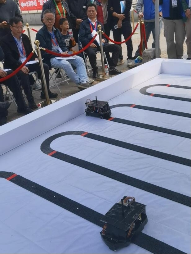 本次大赛以“播种机器人”为主题,赛事要求参赛作品在室外环境实现全程自主作业,既要保证播种精度,又要兼顾作业效率,对机器人的综合性能提出严苛要求。HENAU_1”队(队员:王威力,肖振东,齐广欣,年恩波,王世豪)设计的智能播种机器人,采用“单车解体双车,一次播种两粒”的创新策略。行车装置通过机器视觉算法高速处理实时图像,同步生成导航指令,精准控制机器人运动姿态和播种轨迹。播种装置采用自主设计的对偶直落式播种机构,实现精准播种。“DHH战队”(队员:余昊洋,李俊汉,丁昌昊,米昱城,刘传)设计的智能播种机器人采用“单车解体双车,不停车播种”的创新策略。行车装置底盘搭载高精度多路传感器,实时反馈底盘与田垄的位姿关系,经由高性能处理器对行车装置的运动状态进行同步控制。播种装置采用自主研发的往复式直落播种机构,实现不停车精量播种。“机电新葡京娱乐城App 队”(队员:蔡宇龙、刘泽和、周林青、朱传越、赵亮程)备赛期间围绕“高效精准播种”核心需求,攻克技术难点。比赛现场,面对仿真垄、有色线等复杂场地设施,机器人展现出稳定的作业性能,自主完成路径勘探、定量播种全流程。