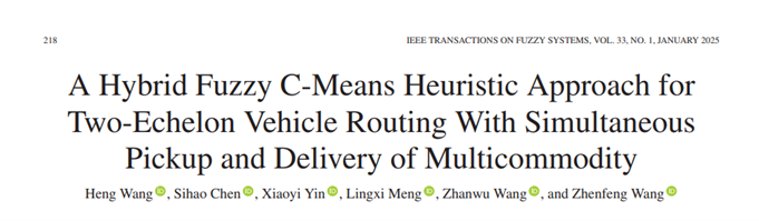 农业物流技术与交通工程团队研究成果“A Hybrid Fuzzy C-Means Heuristic Approach for Two-Echelon Vehicle Routing With Simultaneous Pickup and Delivery of Multicommodity”在《IEEE Transactions on Fuzzy Systems》(中科院一区TOP期刊,IF 11.9)发表,并入选ESI(Essential Science Indicators)高被引,标志着团队成果在农产品物流技术领域具有重要的国际学术影响力与关注度。该研究建立了针对多类商品取送货的两级车辆路径问题,提出了一种融合模糊聚类与改进智能优化的混合启发式求解方法,为物流配送的降本增效提供了创新性解决方案。