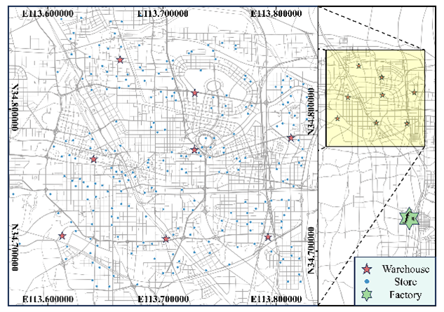 受城市货车配送通行限制影响,越来越多制造企业与物流公司开始采用 “工厂 - 仓库 - 门店” 的两级运输模式。与此同时,连锁商品在物流流转过程中,还频繁地进行补货、退货、货品调配以及 “先入先出” 管理等多项操作。在此背景下,如何在保障配送需求的同时,实现货品的高效回收与再分配,成为物流运营中的关键问题。尤其是对于食品、冷链这类对配送时效要求严苛的行业,科学规划车辆运输路径、降低运输环节的资源浪费,更具有极强的现实紧迫性。