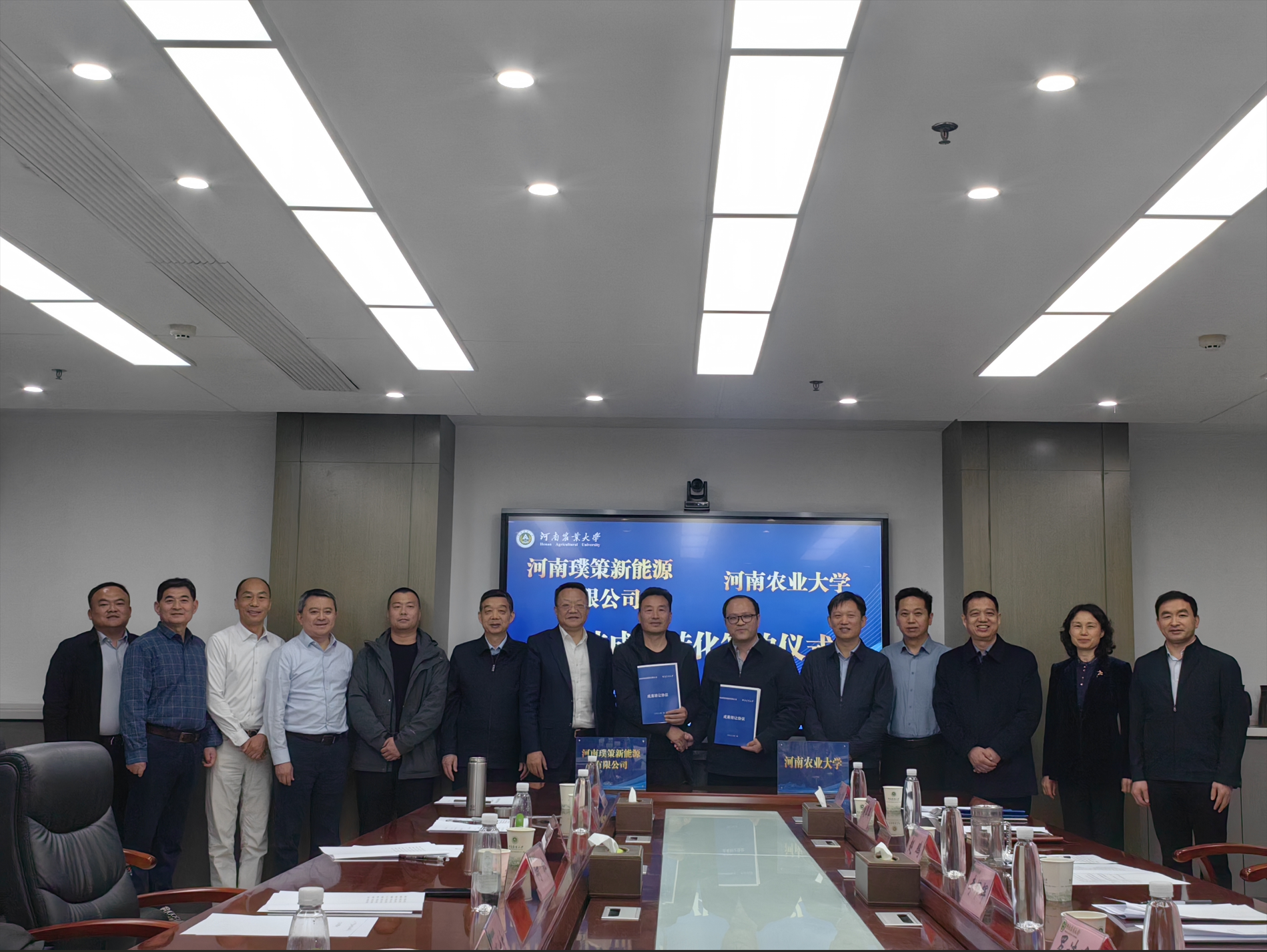 “农林废弃物资源化装备与储能”科研团队代表贺超教授分别与滨杭环境科技(郑州)有限公司代表何非、河南璞策新能源有限公司代表陈墨签订成果转化协议,签约总金额1585万元,内容涵盖有机废弃物制备生物天然气成套技术及装备。