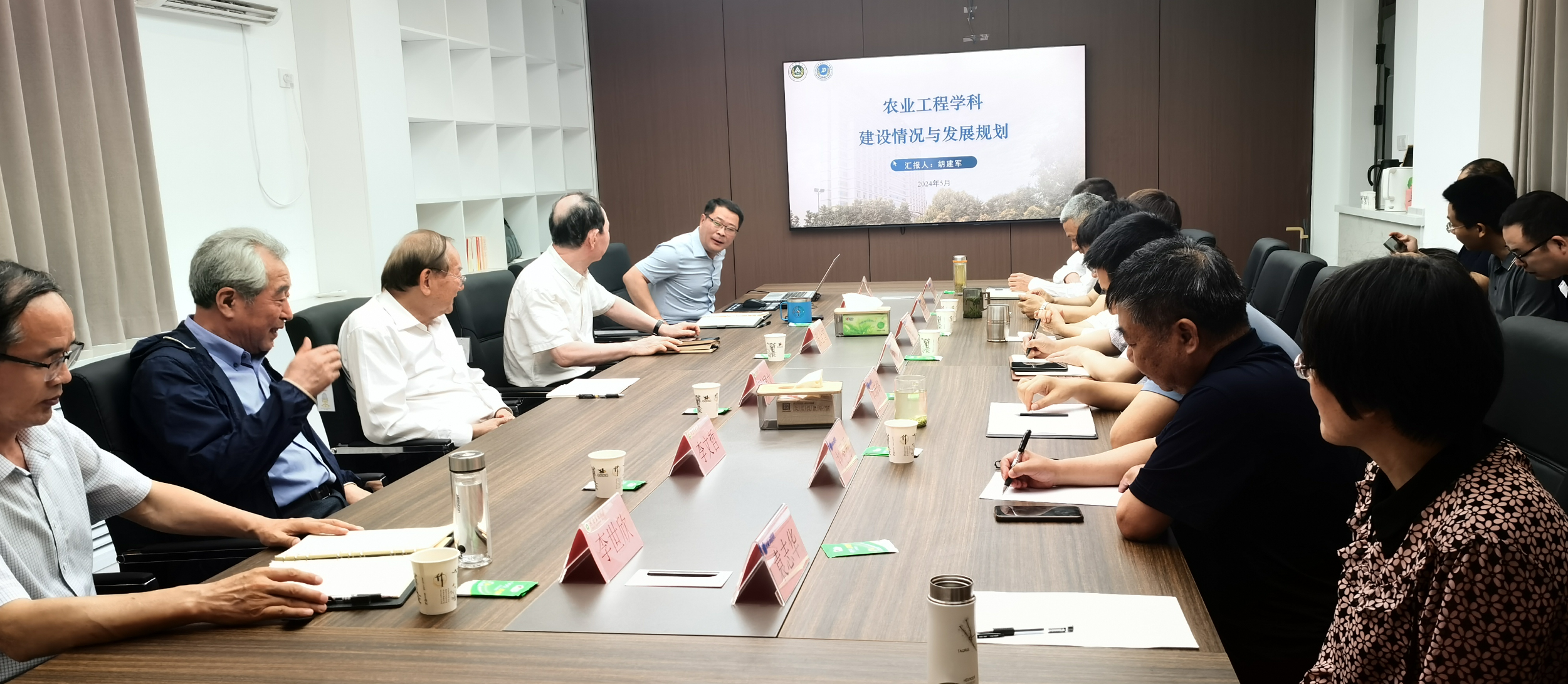 首先,院长胡建军从发展历程、师资队伍建设、教育教学、科学研究、人才培养、国际合作、社会服务等方面介绍了农业工程学科的建设现状与发展规划,就“双一流”创建方案和具体举措进行了说明。