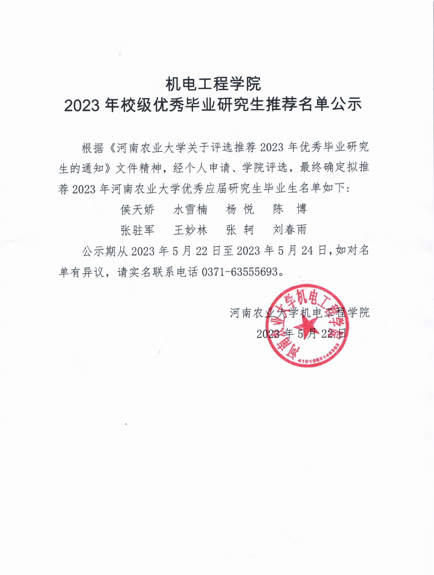 新葡京娱乐城App 2023年校级优秀毕业研究生推荐名单公示
