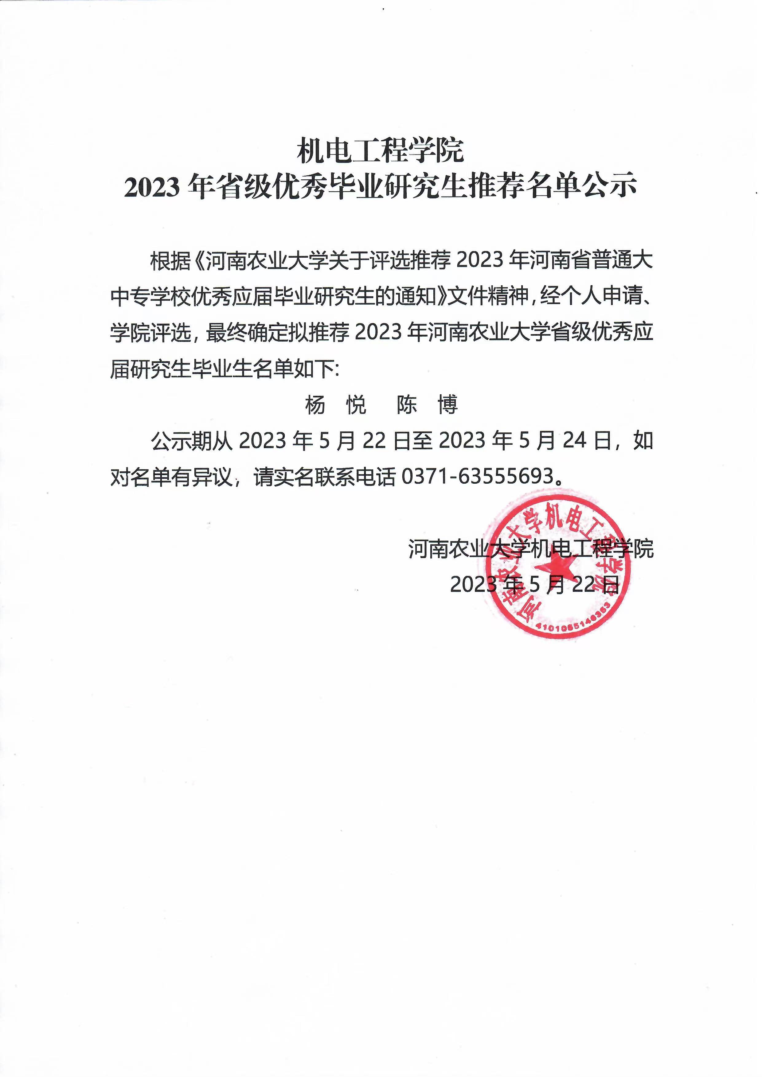 新葡京娱乐城App 2023年省级优秀毕业研究生推荐名单公示