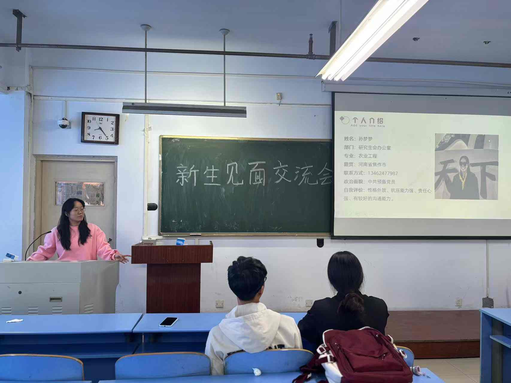 的整体情况,并就研究生日常管理制度、培养方案、奖助学金评定制度进行解读,让新生们对研究生学习生活有了更加详细的了解,同时,他强调研究生要重视社会实践,做好职业生涯规划。