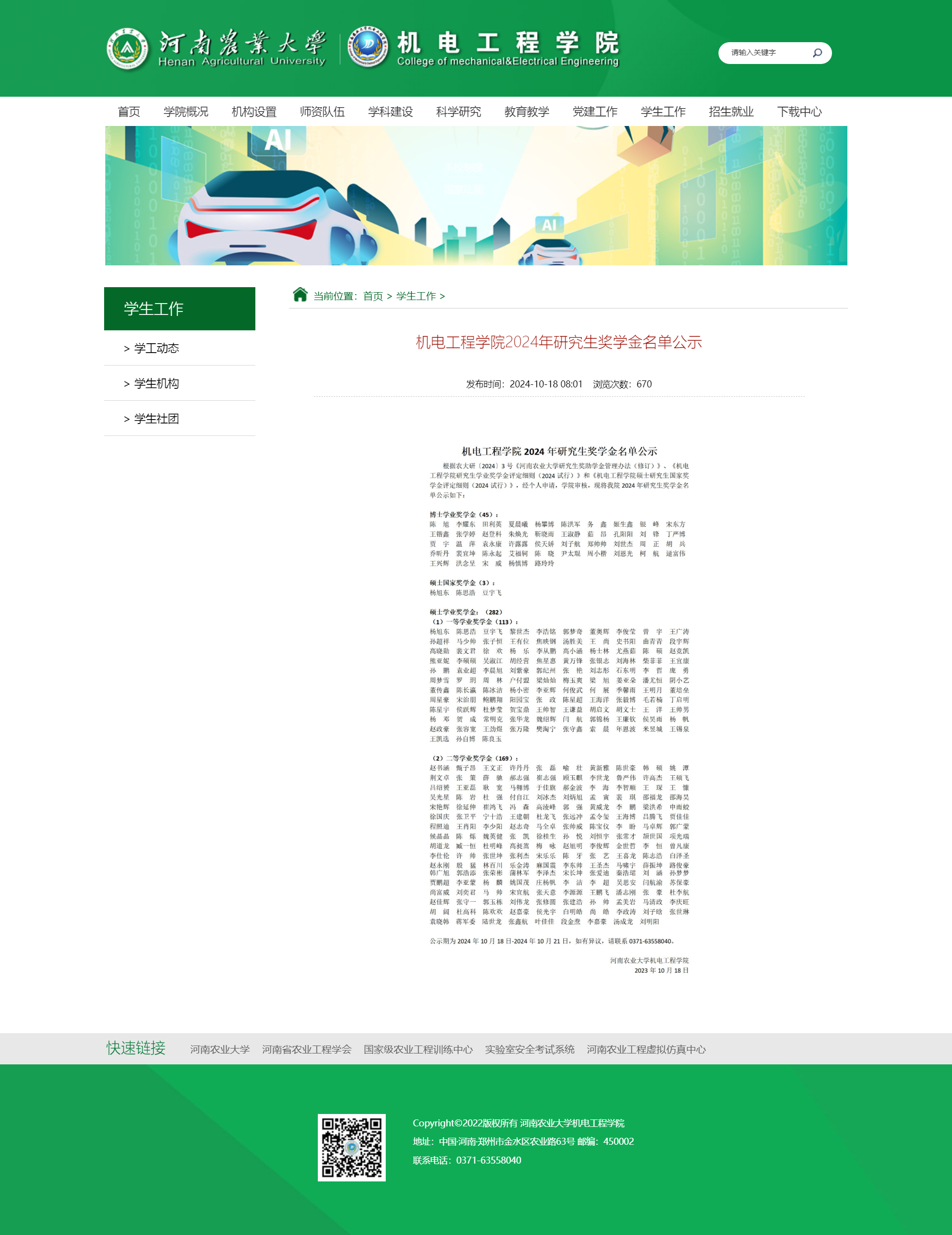 2024年组织筹办多场“青春智汇”博士讲坛活动,邀请新葡京娱乐城App 青年优秀博士为大家讲解相关领域最新进展。同时,邀请邀请知名专家来院交流讲学为新葡京娱乐城App 师生做学术报告;举办农业工程博士后学术论坛;成功举办研究生四六级模拟考试,锻炼研究生英语考试应试能力;组织研究生参加中国农业机器人大赛,“挑战杯”大赛等国家级科技竞赛,增强科研创新能力;组织研究生学术科研经验交流会等学术活动,帮助研究生树立正确的学习态度。