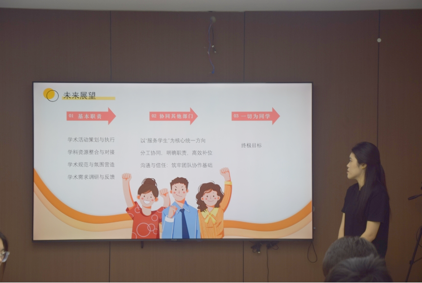 本次现场面试,为竞聘者搭建充分展示自我的平台。在自我陈述环节中竞聘者们结合个人学习经历、实践成果,分享对研究生会的理解以及未来工作规划。现场问答环节、气氛热烈,评委团结合竞聘者的面试表现重点考察其语言组织表达能力,逻辑思维及应急应变能力。