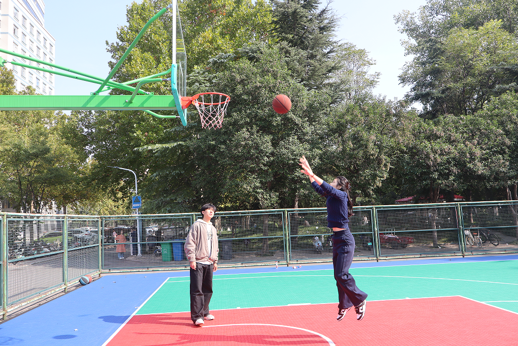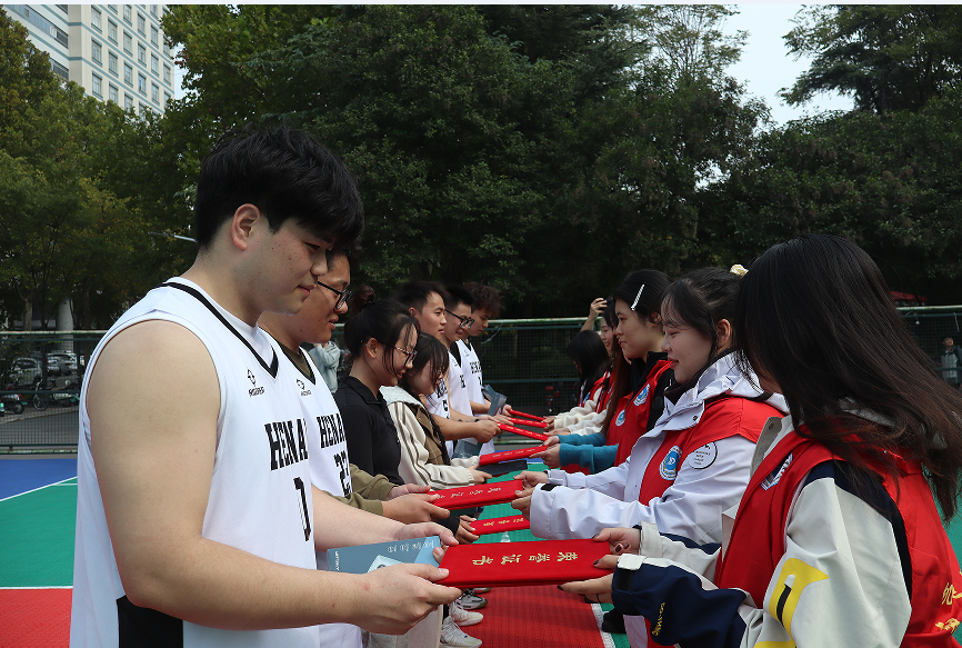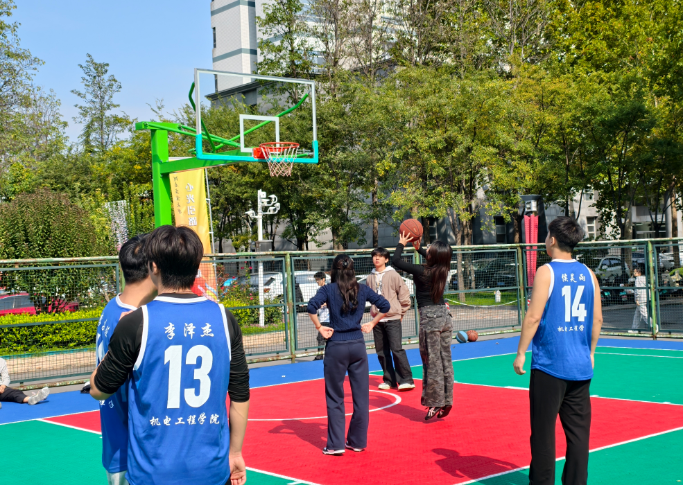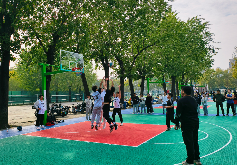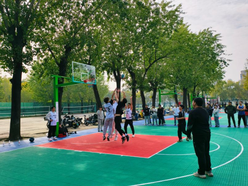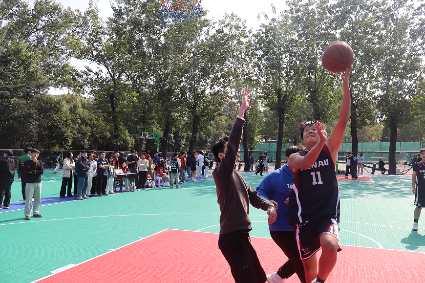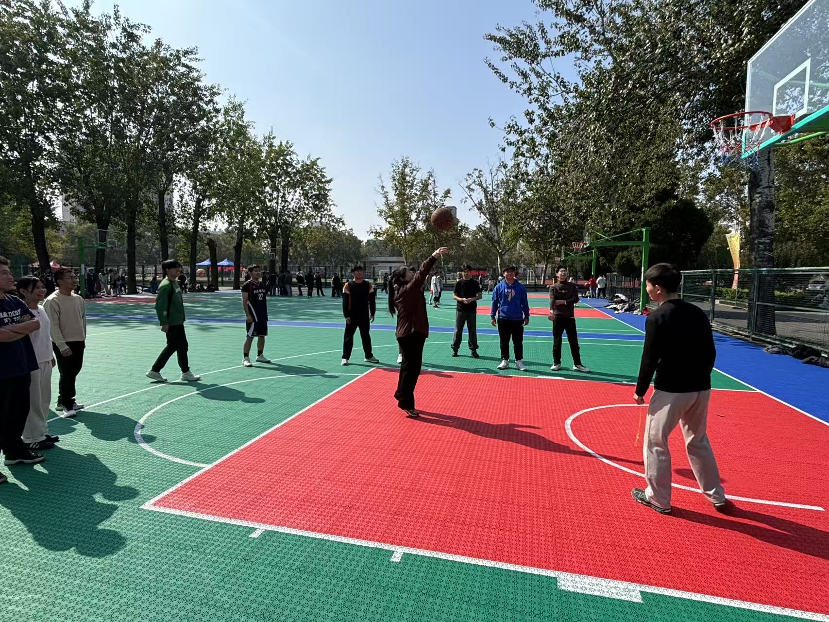 在文化路校区塑胶篮球场举办第一届研究生“迎新杯”趣味三人制篮球赛。