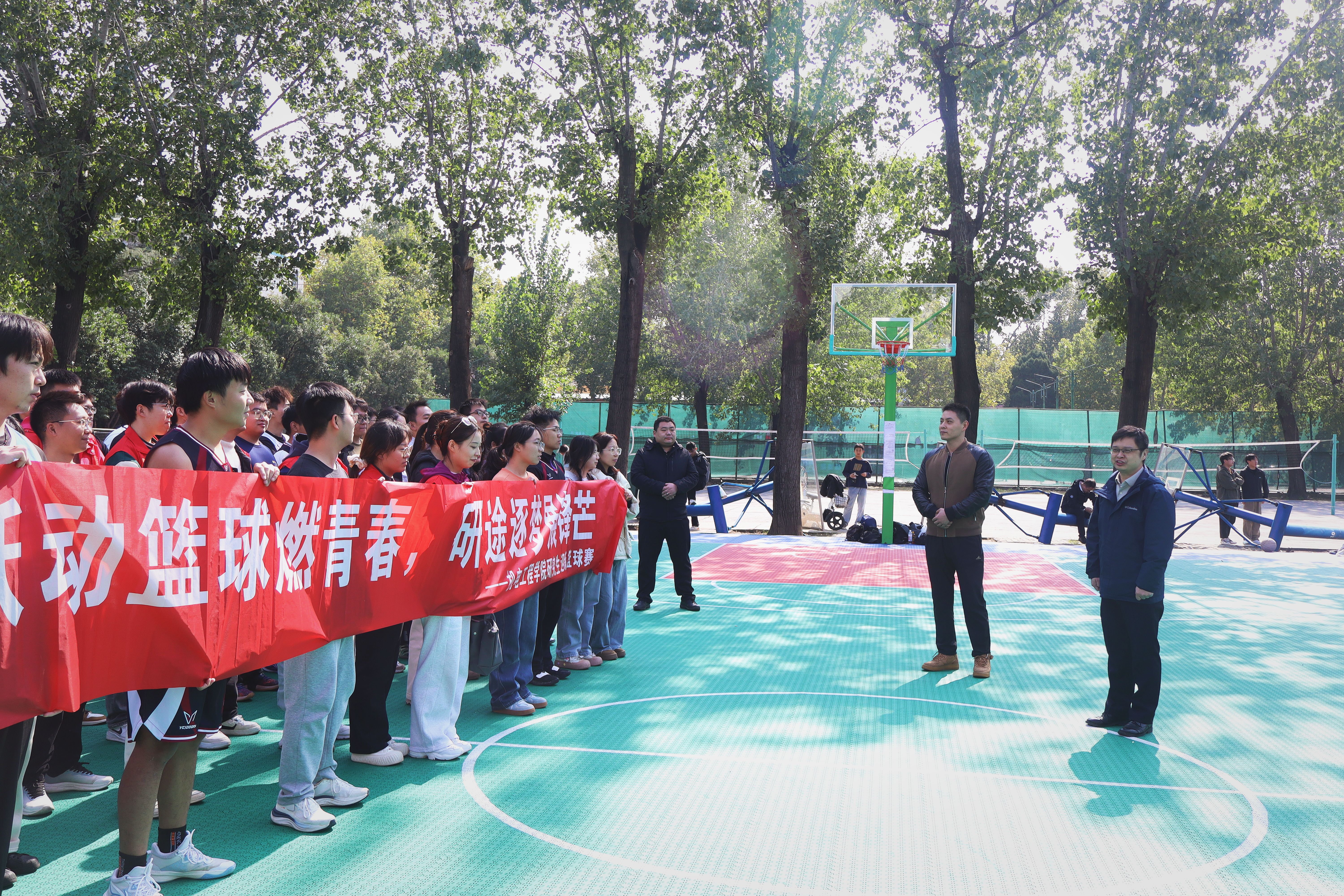研究生篮球爱好者们踊跃报名,来自各年级共八支队伍同场竞技,院党委副书记宋晶、研究生辅导员李锦到场为大家加油鼓励。赛前,宋晶发表动员讲话,他强调,研究生群体要进一步加强锻炼、提升体能,摒弃“脆皮大学生”标签,他要求,同学们要践行每日锻炼计划,用运动锻造健康体魄与坚韧品格,为成为实验室里的科研先锋打好基础。