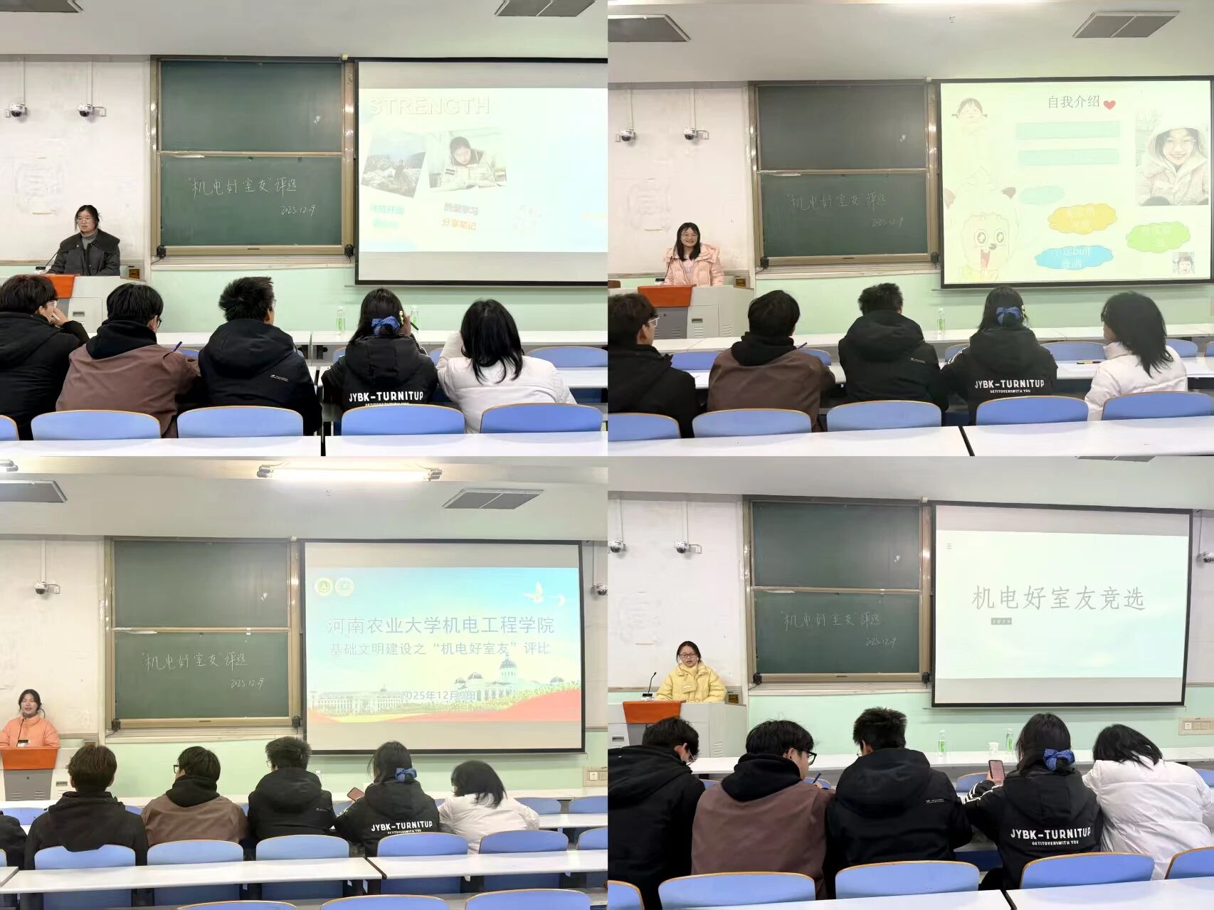 在文化路校区工程楼304、305、306教室同步开展“机电好室友、优秀寝室长、最美生活委员”评选活动,年级辅导员梁凯凯和学生代表参与此次评选。