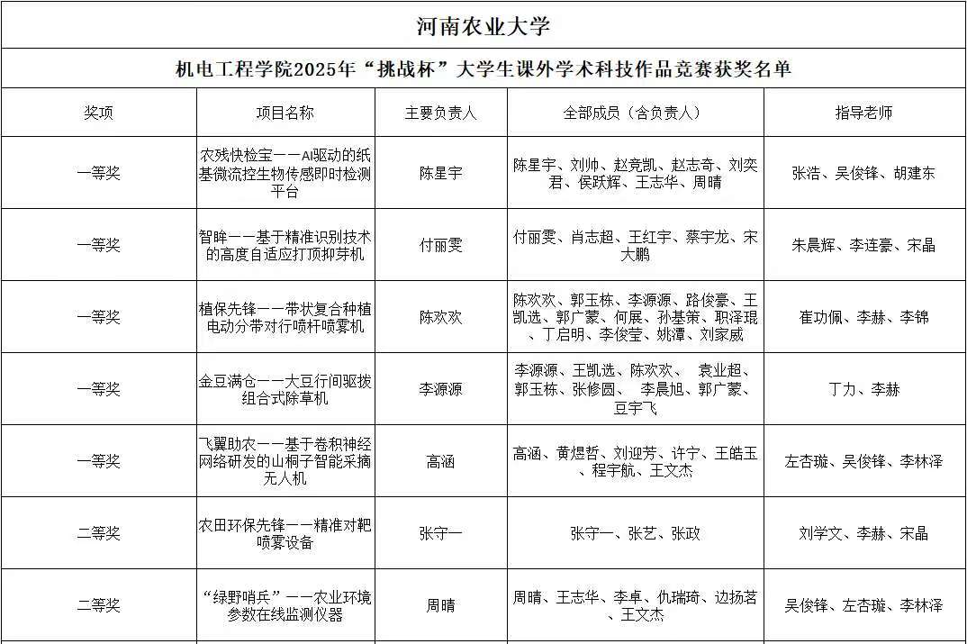 2025年“挑战杯”大学生课外学术科技作品竞赛,最终评选出一等奖5名,二等奖8名,三等奖11名。现将获奖名单公示如下: