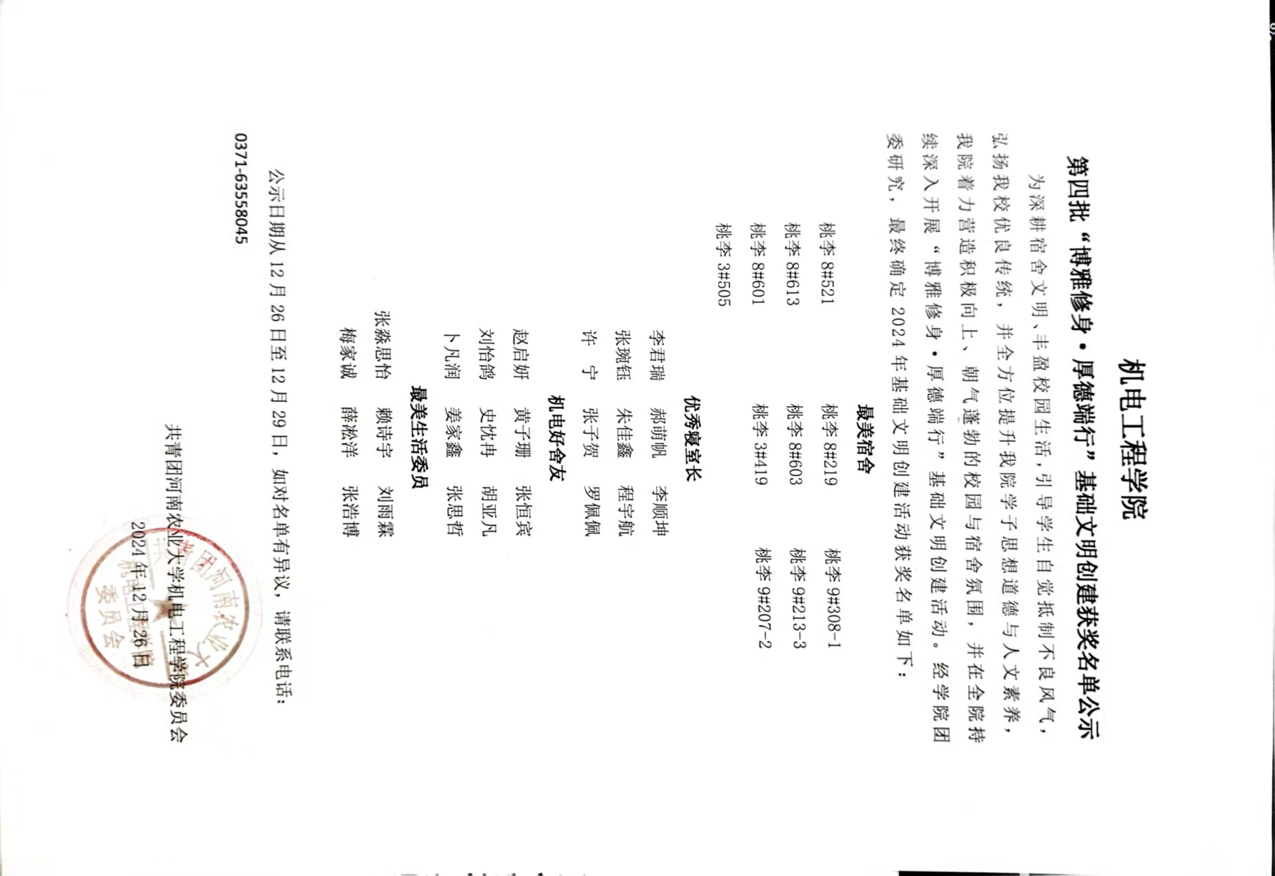 为深耕宿舍文明、丰盈校园生活,引导学生自觉抵制不良风气,弘扬新葡京娱乐城App 优良传统,并全方位提升新葡京娱乐城App 学子思想道德与人文素养,新葡京娱乐城App 着力营造积极向上、朝气蓬勃的校园与宿舍氛围,并在全院持续深入开展“博雅修身·厚德端行”基础文明创建活动。经新葡京娱乐城App 团委研究,最终确定2024年基础文明创建活动获奖名单如下: