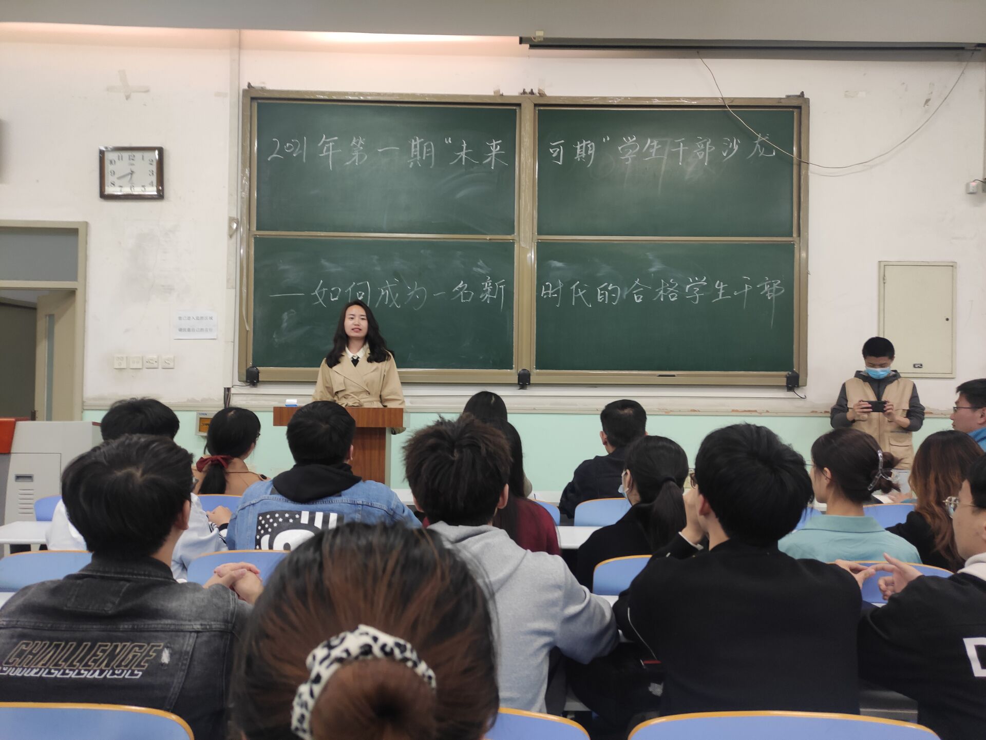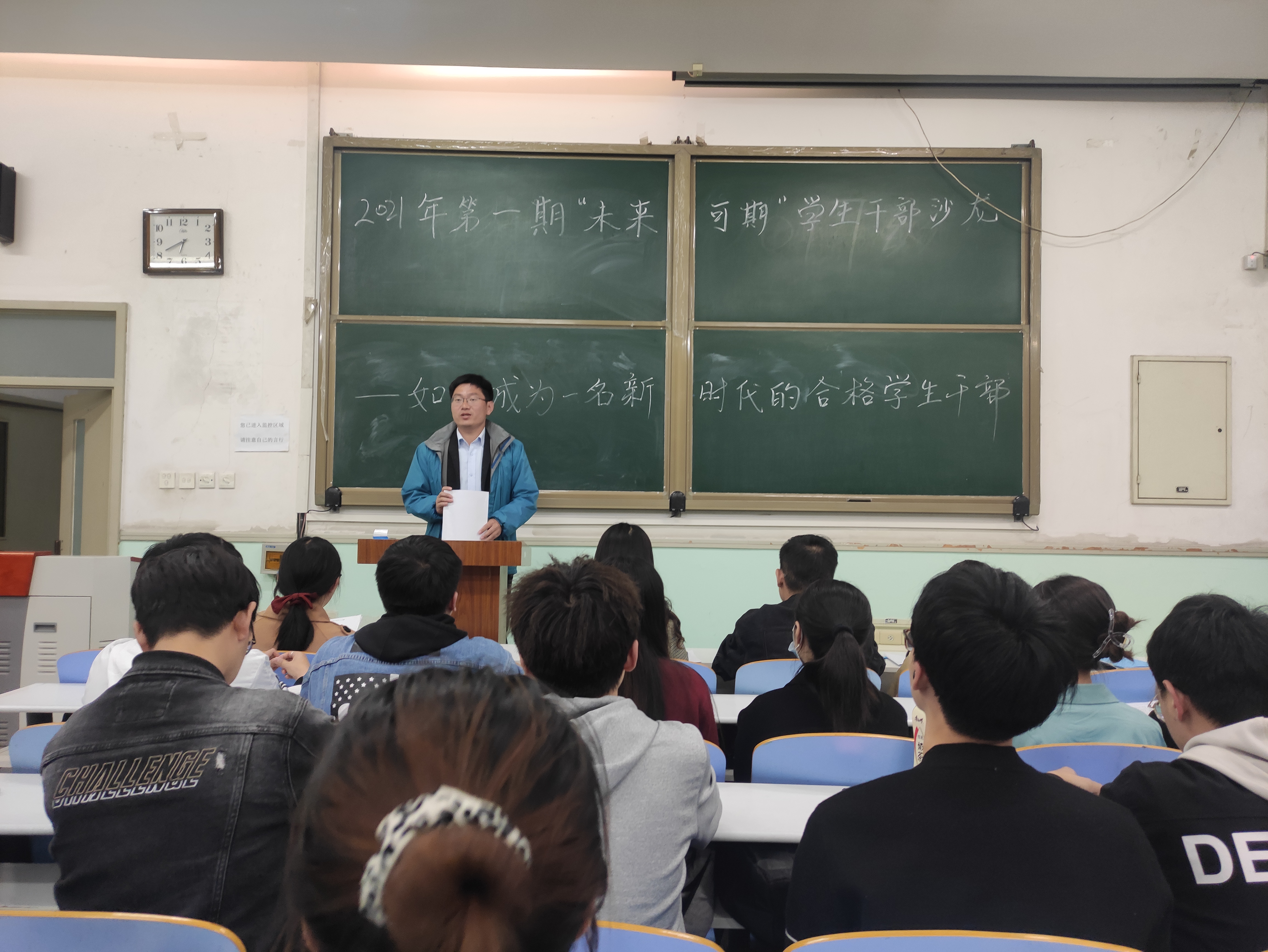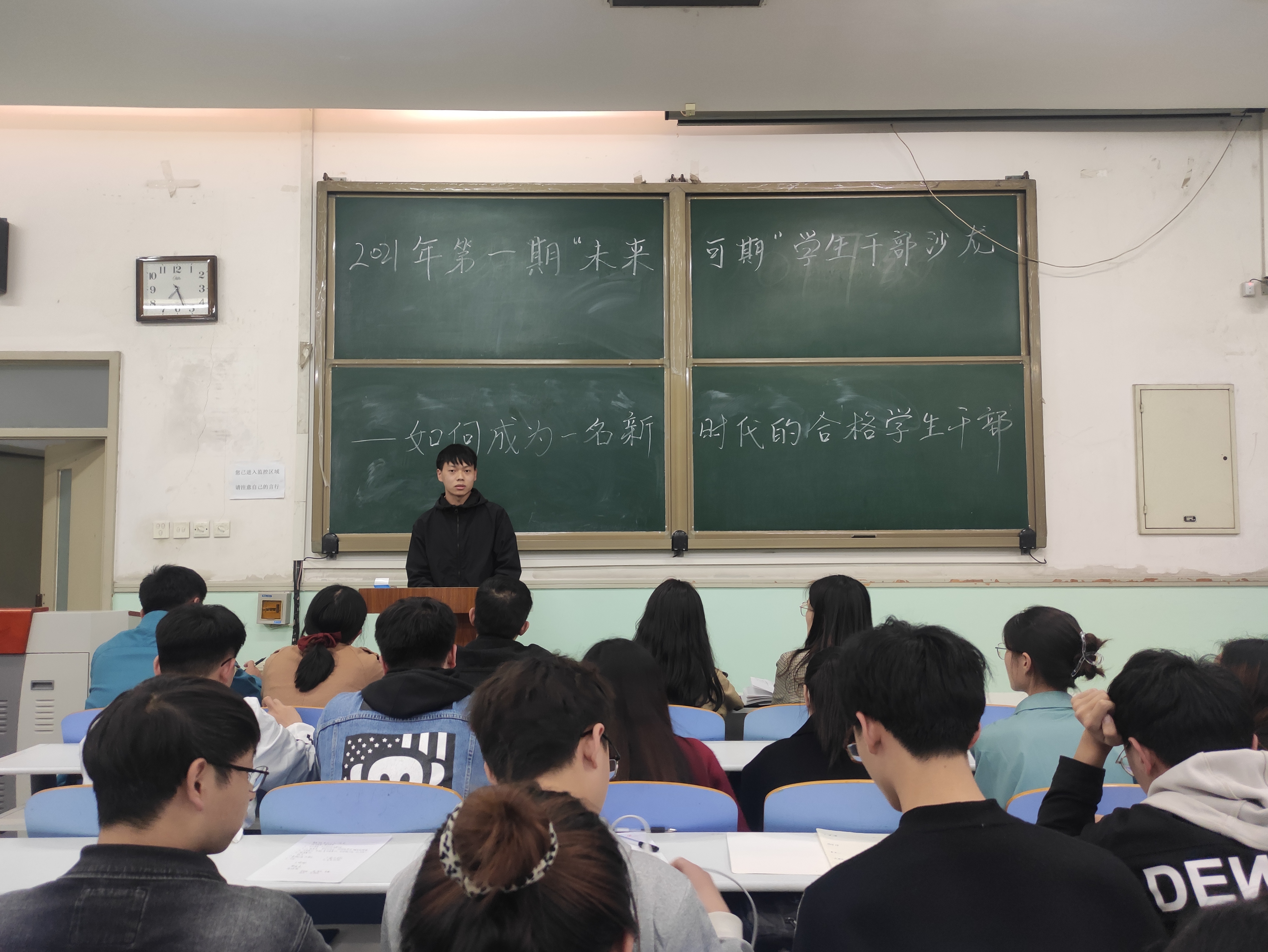 于文化路校区工程楼207开展以 “如何成为一名新时代的合格学生干部”为主题的2021年第一期“未来可期”学生干部沙龙活动。会议由院团委书记黄笑主持,院团委副书记徐捧丽、辅导员胡亭亭、王晓楠、徐佳亮出席,院团委、学生党建办、学生会及红色火炬工作室等四大学生组织学生干部参加会议。