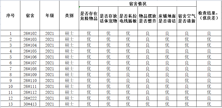 3月22日宿舍安全卫生检查结果
