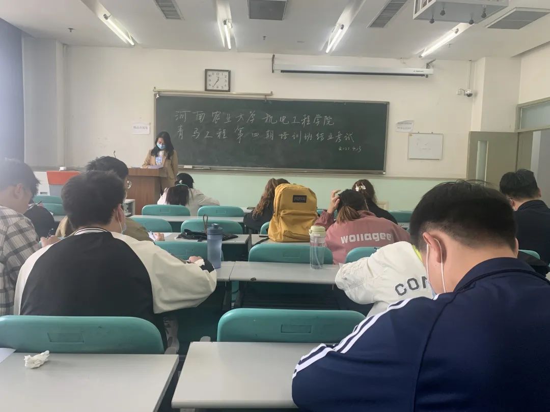 “青马工程”第四期培训班结业考试。青马班班主任王晓楠老师进行监考,院“青马工程”第四期培训班成员参加考试。