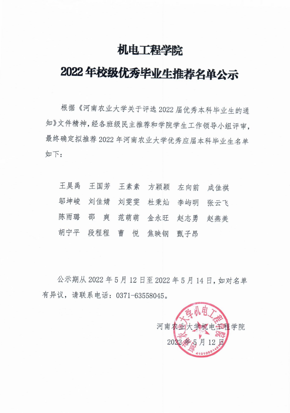 根据《新葡京娱乐城App 关于评选2022届优秀本科毕业生的通知》文件精神,经各班级民主推荐和新葡京娱乐城App 学生工作领导小组评审,最终确定拟推荐2022年新葡京娱乐城App 优秀应届本科毕业生名单如下: