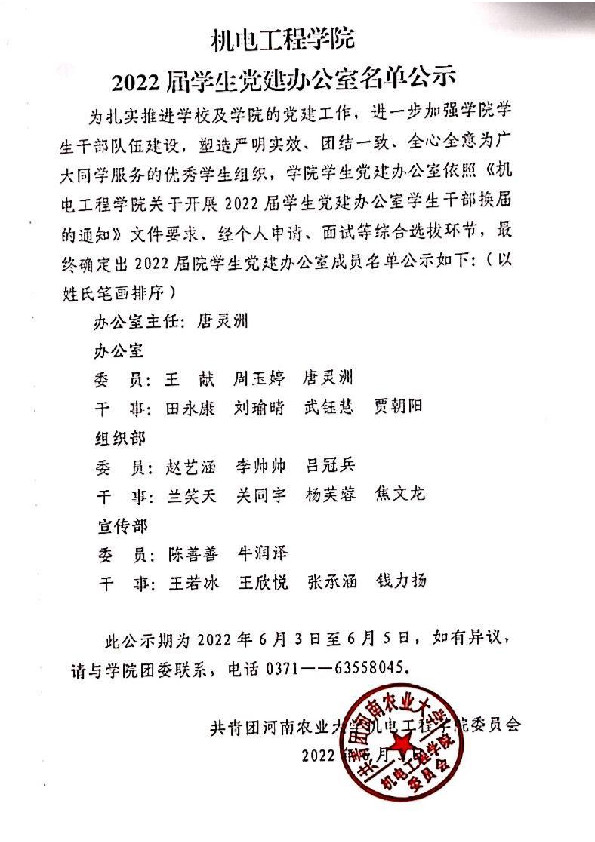 新葡京娱乐城App 2022届学生党建办公室名单公示