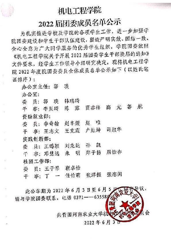 2022届团委成员名单公示