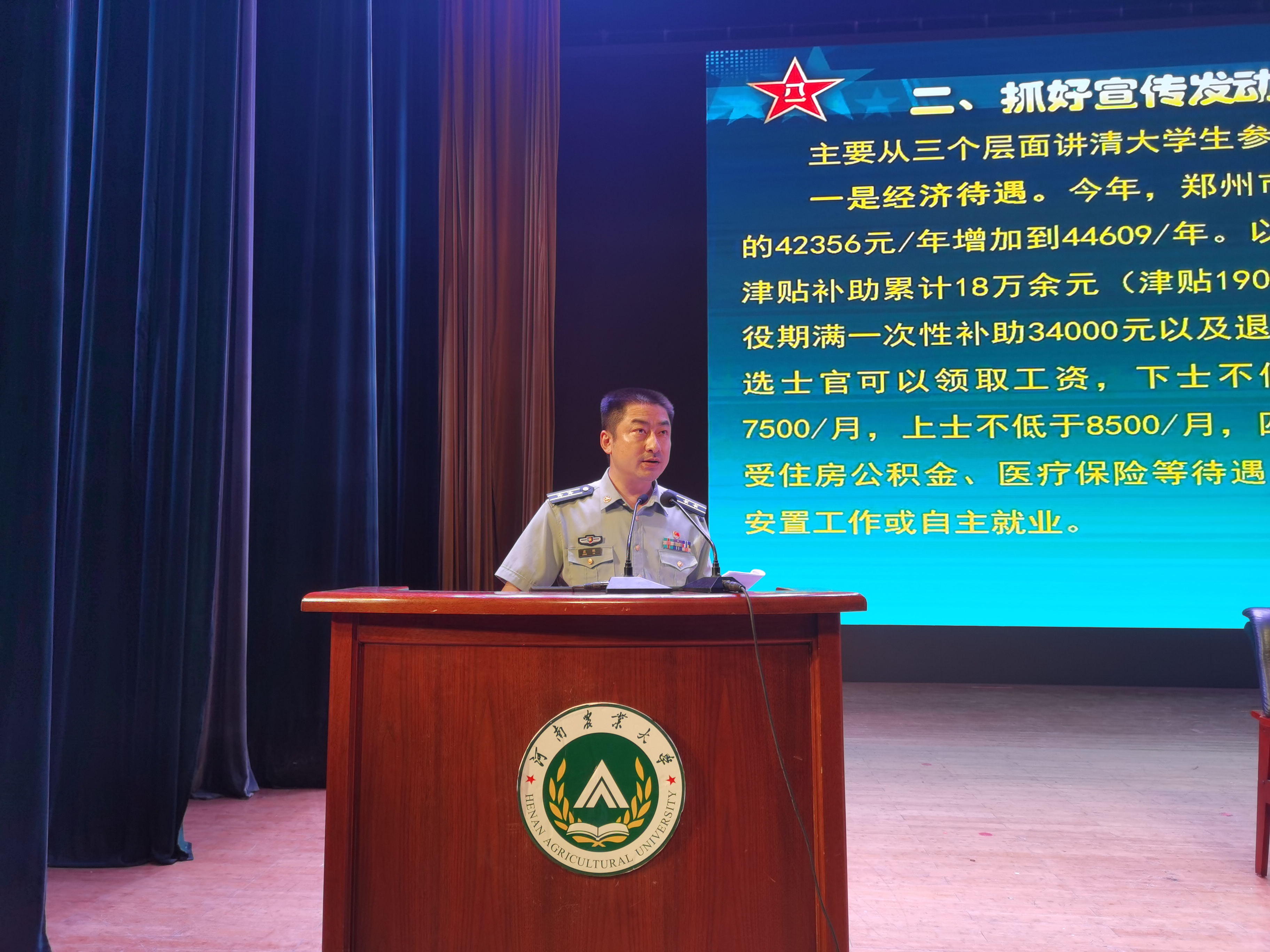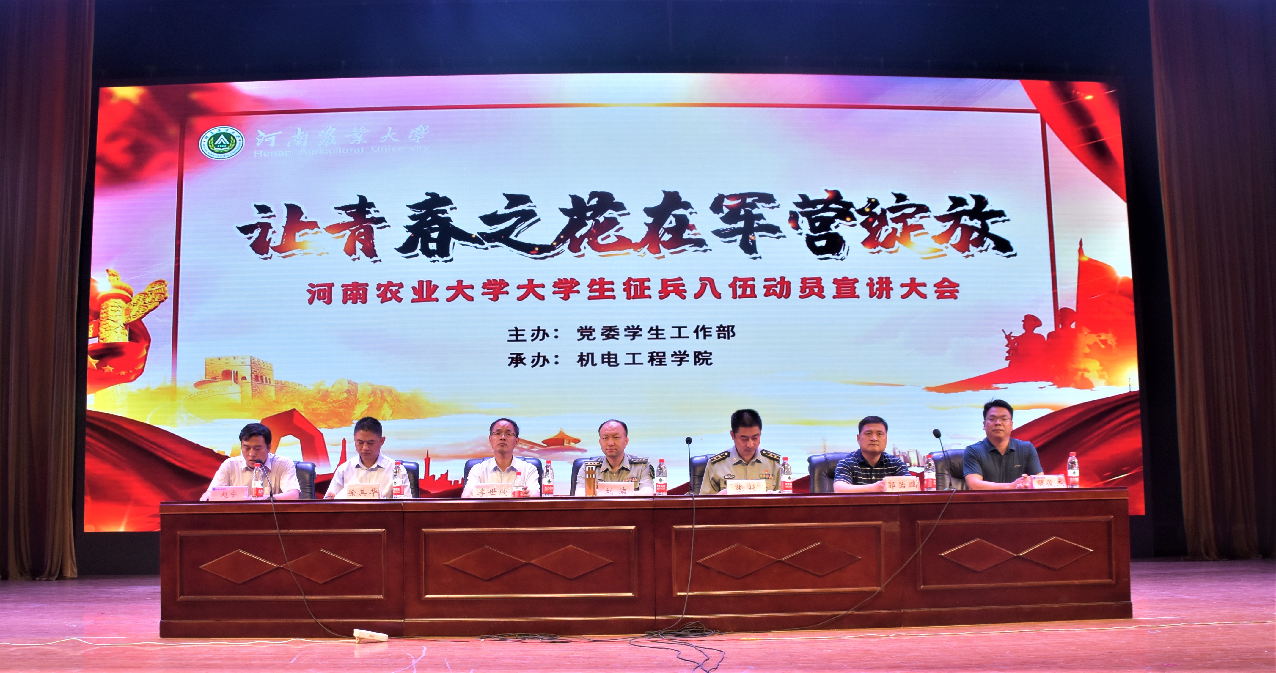 2021年大学生征兵入伍动员宣讲大会。河南省军区郑州警备区金水区人民武装部部长刘岩、武装部副部长张林,校党委学工部副部长郭治鹏、院党委书记李世欣、新葡京娱乐城App