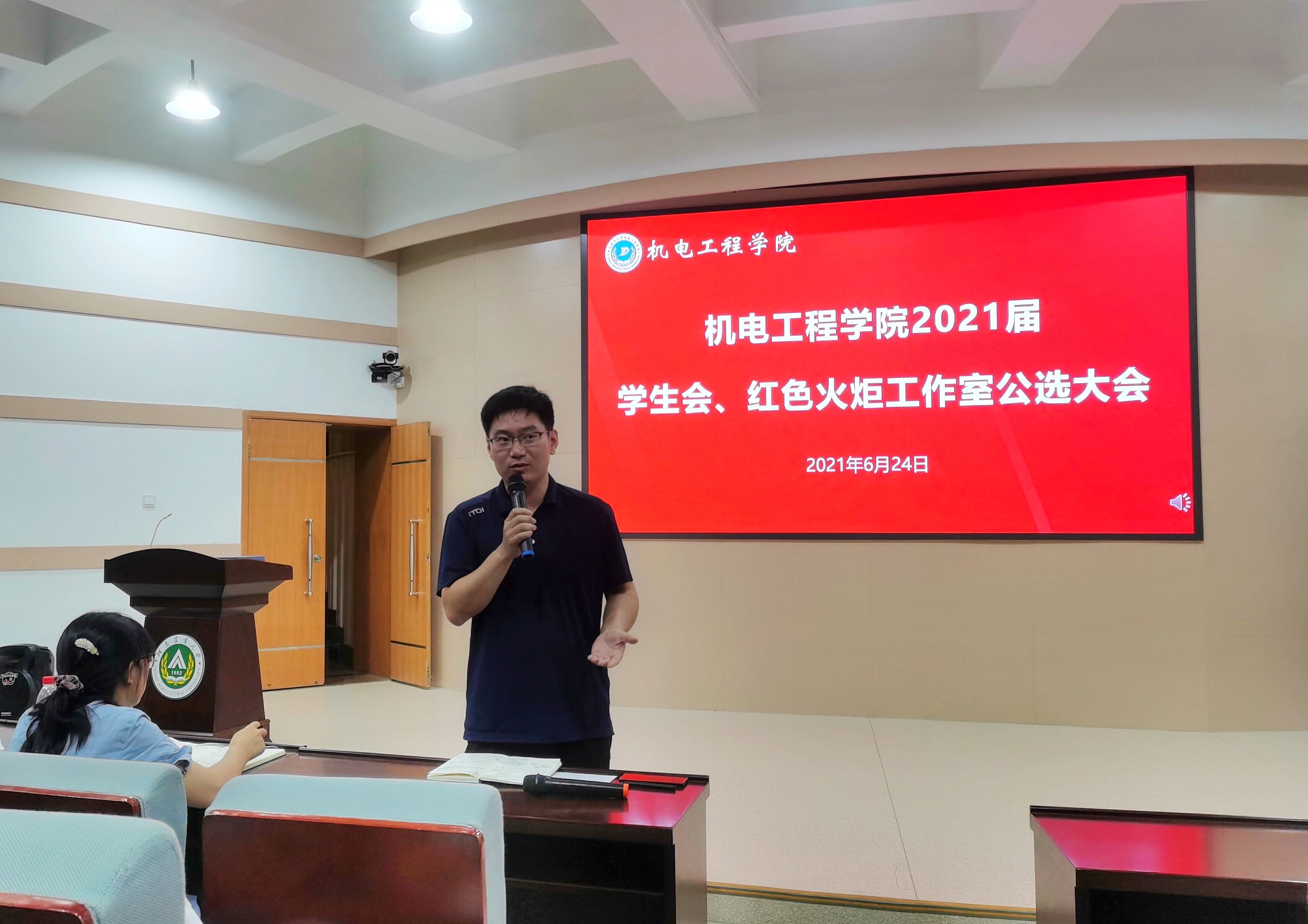2021届学生会、红色火炬工作室公选大会。院团委书记黄笑、团委副书记徐捧丽、辅导员胡亭亭、王晓楠、徐佳亮以及新葡京娱乐城App