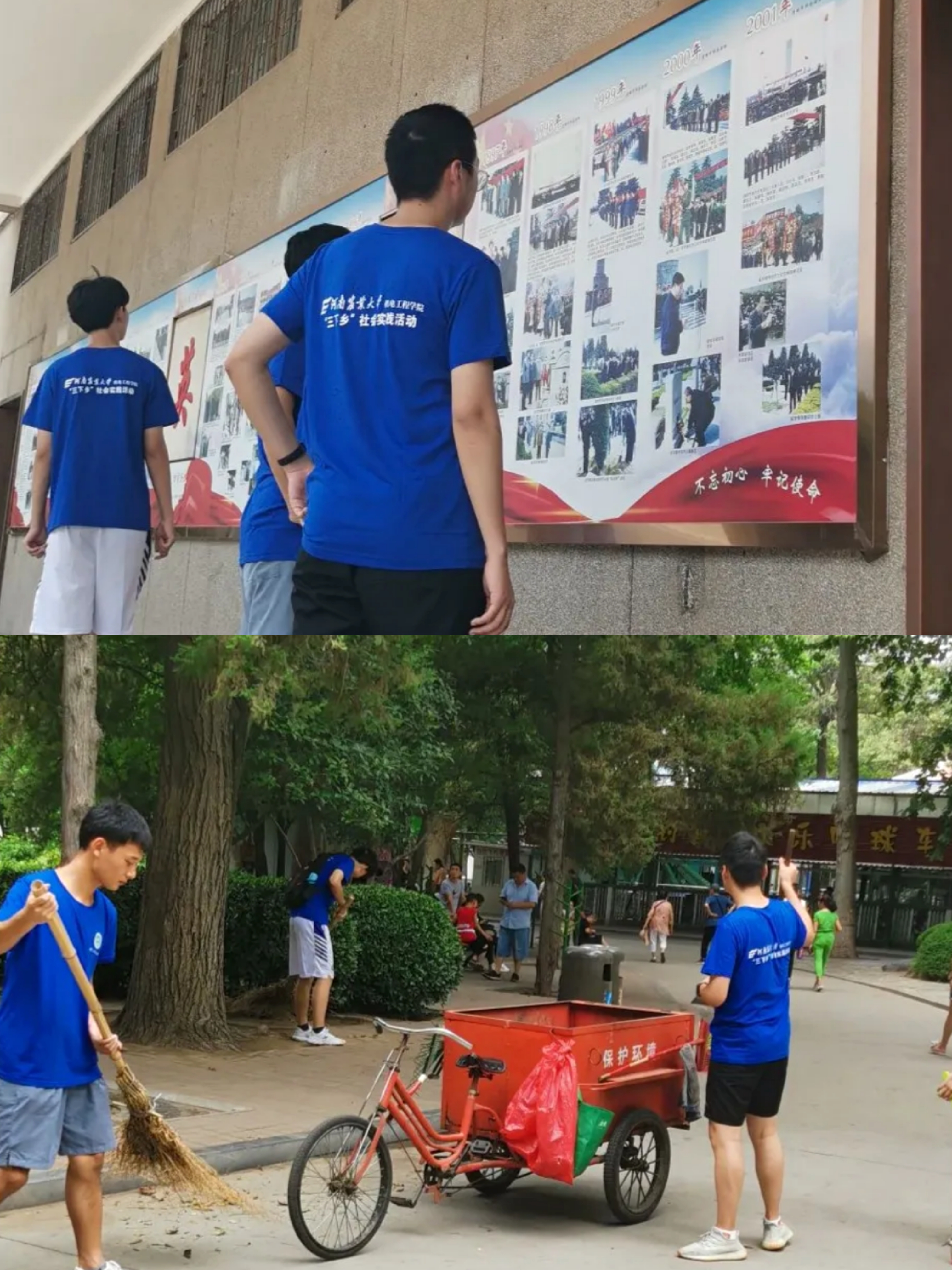 6月30日,为缅怀革命先烈,弘扬民族精神,实践队员们怀着崇敬之心来到了郑州烈士陵园,在这里他们体会到了革命先烈视死如归的牺牲精神,更加坚定了爱党爱国的信念。7月1日,实践队员们于人民公园进行垃圾清理工作,相互配合,分工明确,得到了周围居民的一致认同。通过本次实践,他们不仅培养了吃苦耐劳的精神,更深刻地意识到作为新时代青年应当接下实现国家富强、民族复兴的接力棒,不忘初心,努力成为中国发展最积极、最有生气的中坚力量。