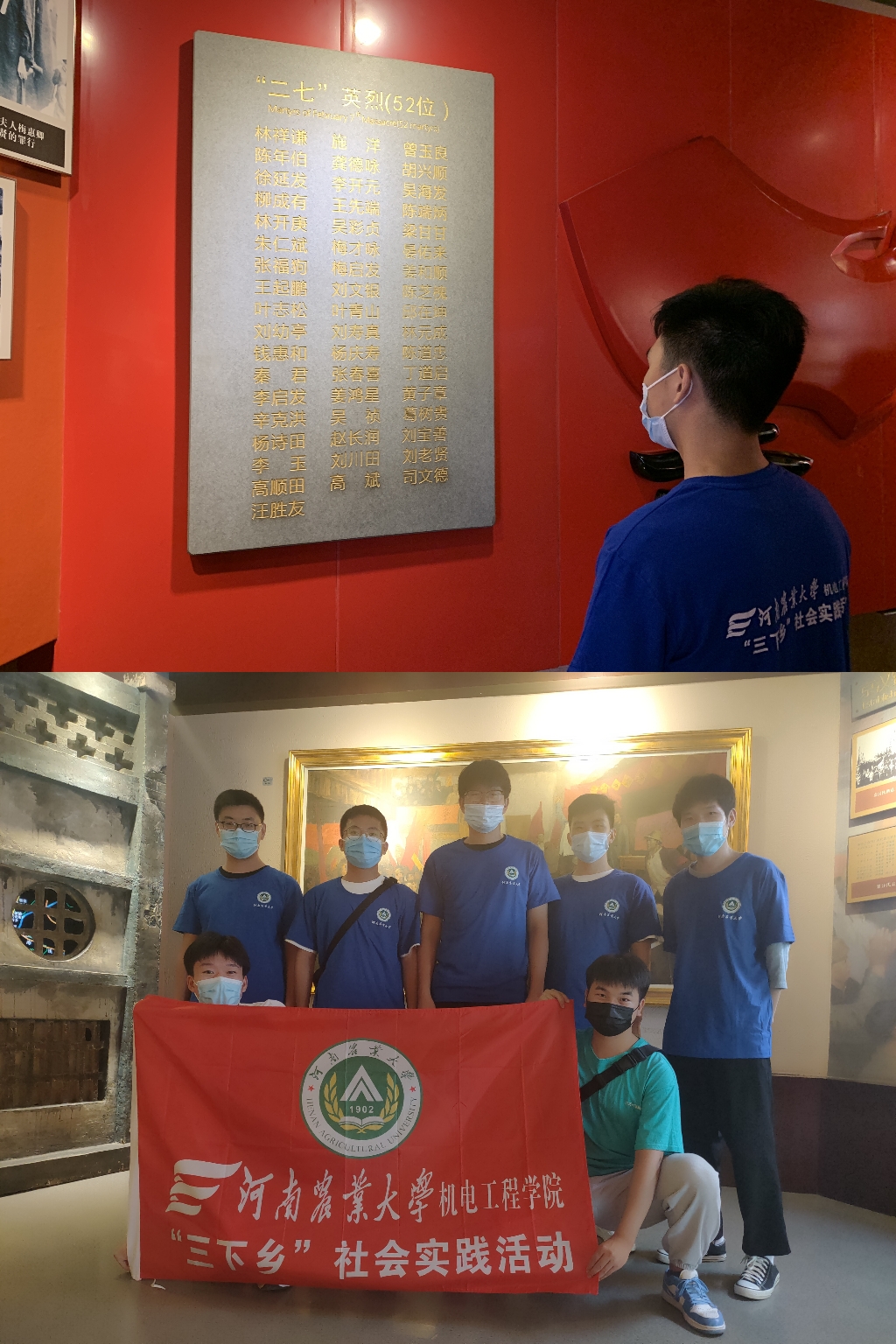 实践队员们到达二七塔后便被塔内陈列的有关“二七”大罢工的各种历史文物、图片和文字资料所吸引,他们驻足观看,被一件件革命先辈们的英雄事迹所深深感染。通过此次活动,队员们深刻认识到如今幸福生活的来之不易,并立志要刻苦学习,用青春书写为祖国奋斗的篇章。