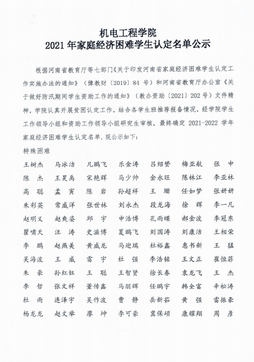 根据河南省教育厅等七部门《关于印发河南省家庭经济困难学生认定工作实施办法的通知》(豫教财[2019]84号)和河南省教育厅办公室《关于做好防汛期间学生资助工作的通知》(教办资助[2021]202号)文件精神,新葡京娱乐城App