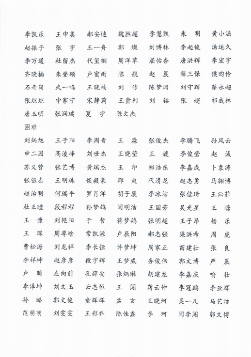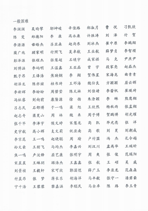 2021年家庭经济困难学生认定名单公示