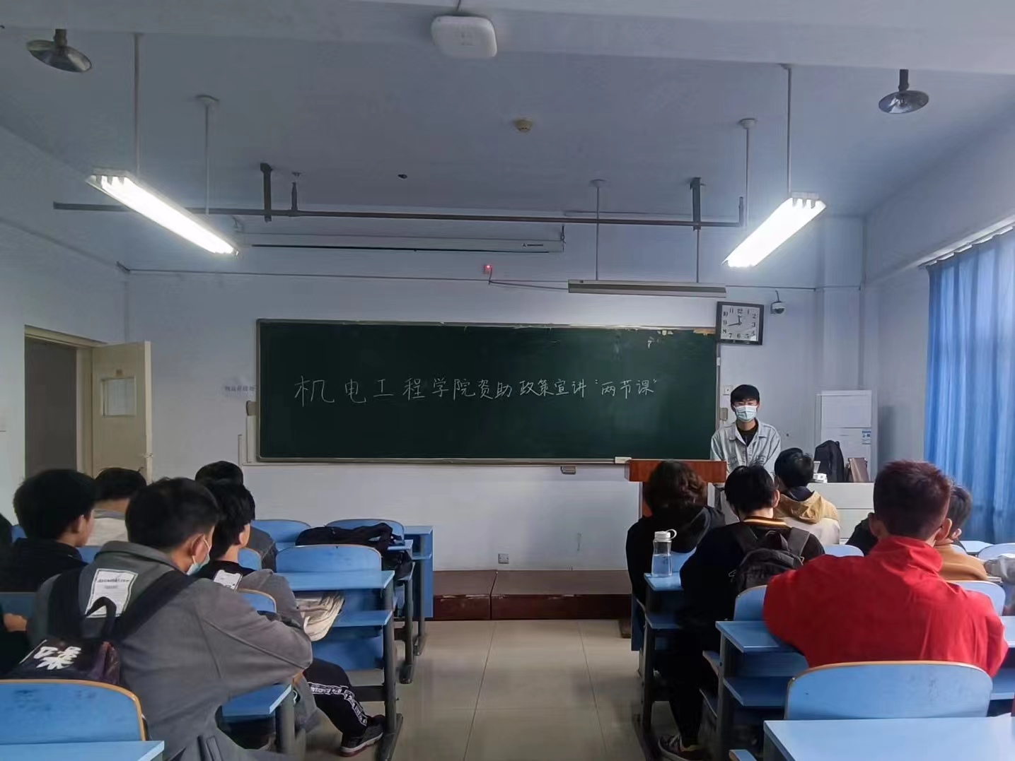 分别于文化路校区工程楼102教室、推广楼309教室组织2022级新生开展资助政策宣讲“两节课”活动。各班级宣讲人紧紧围绕高校学生资助政策体系,从国家奖学金、国家励志奖学金、国家助学金、国家助学贷款等方面向2022级新生进行主要介绍,详细说明了各个资助政策的资助范围、申请条件、申请时间、审批时间和发放时间等相关事宜,同时系统讲解了生源地信用助学贷款的申请标准、贷款条件和还款流程等程序办法,以及有关征兵入伍、勤工俭学和其他辅助措施的注意事项。