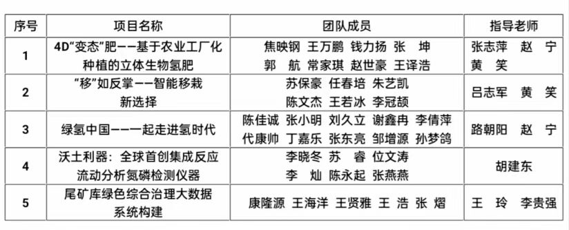 参赛作品《4D“变态”肥——基于农业工厂化种植的立体生物氢肥》获评金奖,《“移”如反掌——智能移栽新选择》和《绿氢中国——一起走进氢时代》获评银奖,《沃土利器:全球首创集成反应流动分析氮磷检测仪器》和《尾矿库绿色综合治理大数据系统构建》获评铜奖。