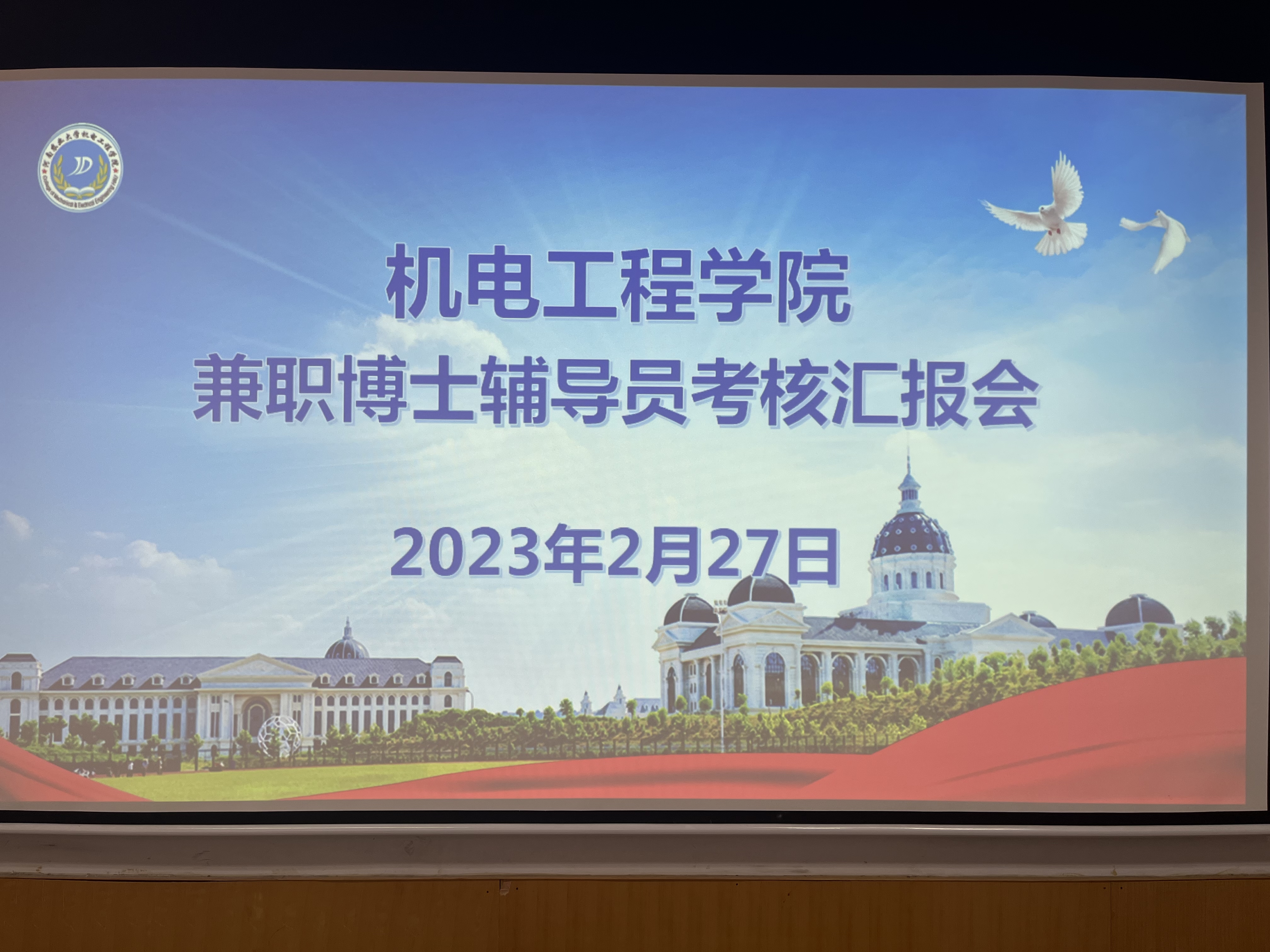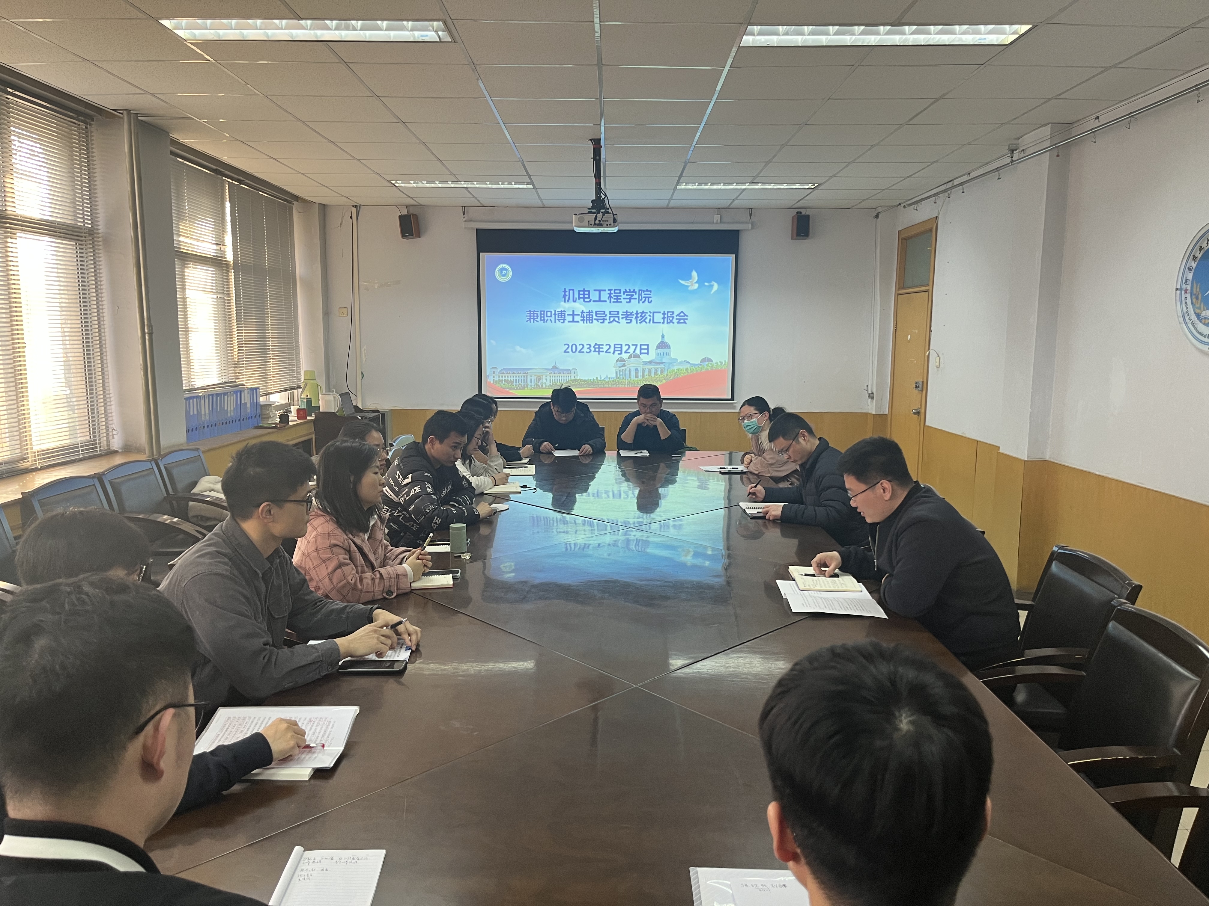 兼职博士辅导员考核汇报会,院党委副书记宋晶,团委书记黄笑,团委副书记徐捧丽,全体辅导员参加会议,此次会议由黄笑主持。