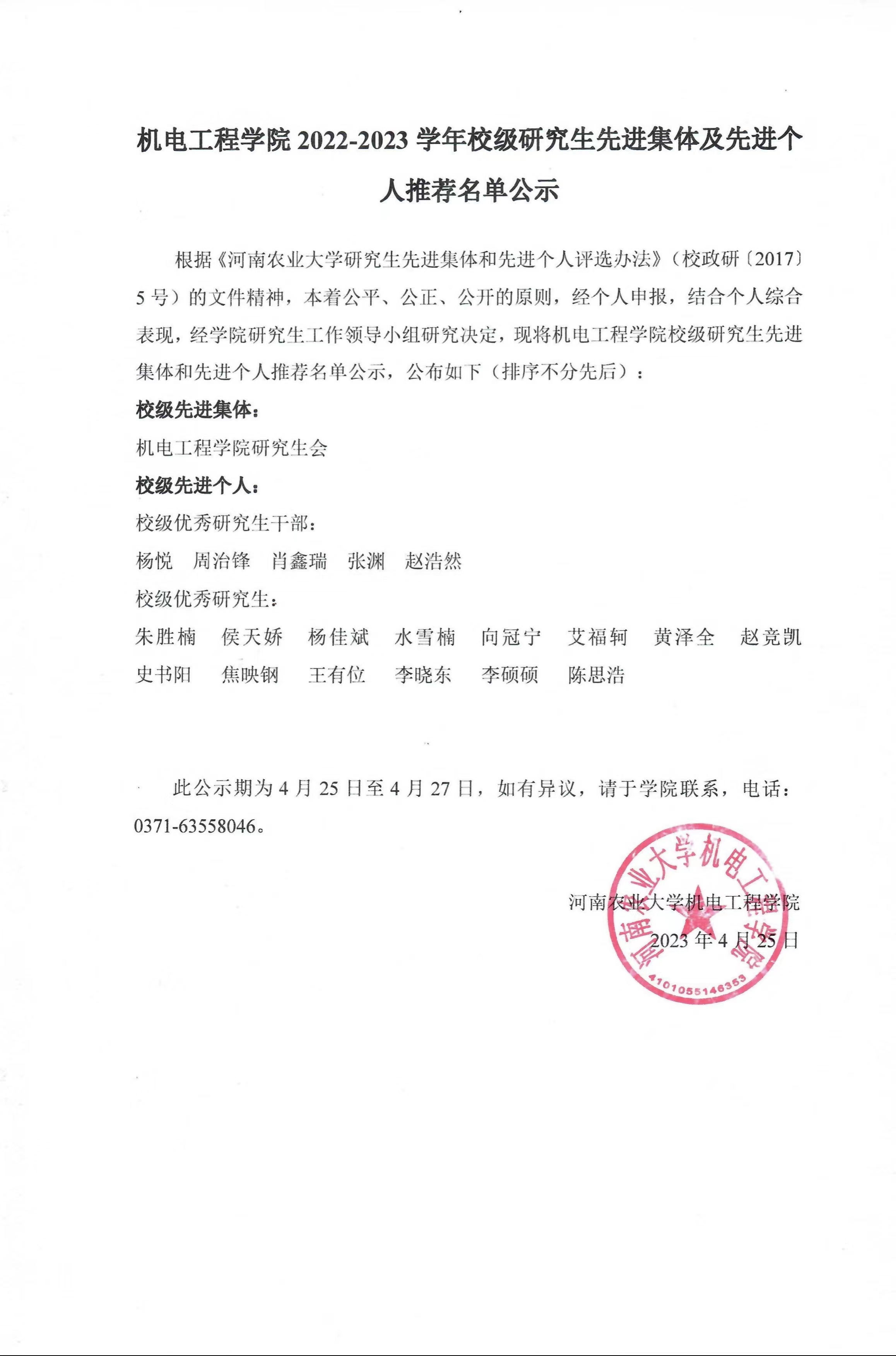 新葡京娱乐城App 2022-2023 学年校级研究生先进集体及先进个人推荐名单公示