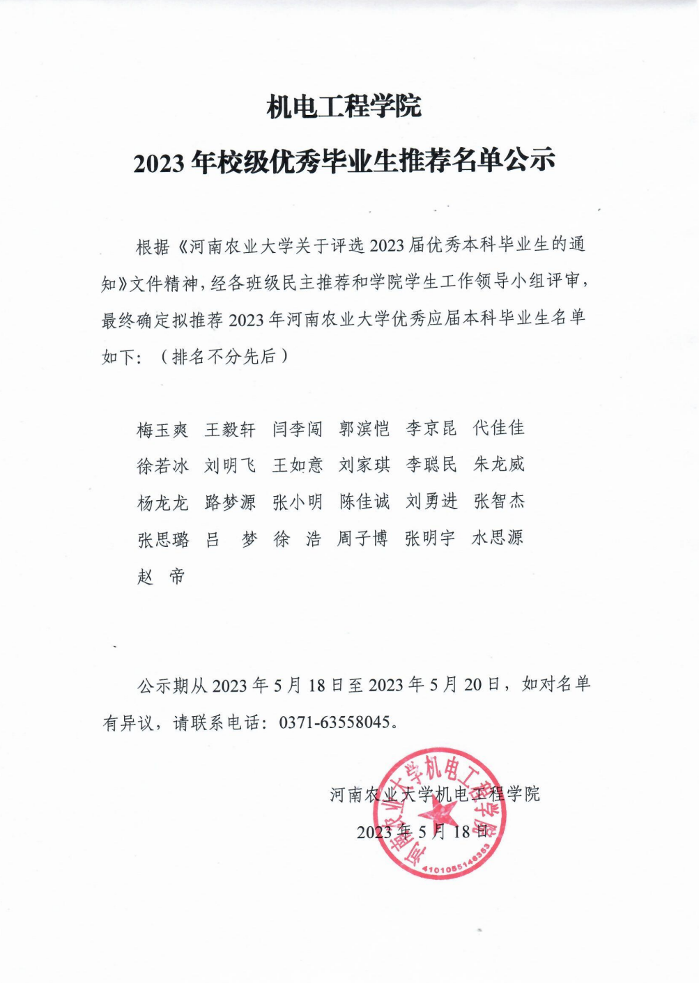 根据《新葡京娱乐城App 关于评选 2023 届优秀本科毕业生的通知》文件精神,经各班级民主推荐和新葡京娱乐城App 学生工作领导小组评审最终确定拟推荐 2023 年新葡京娱乐城App 优秀应届本科毕业生名单如下: (排名不分先后 )