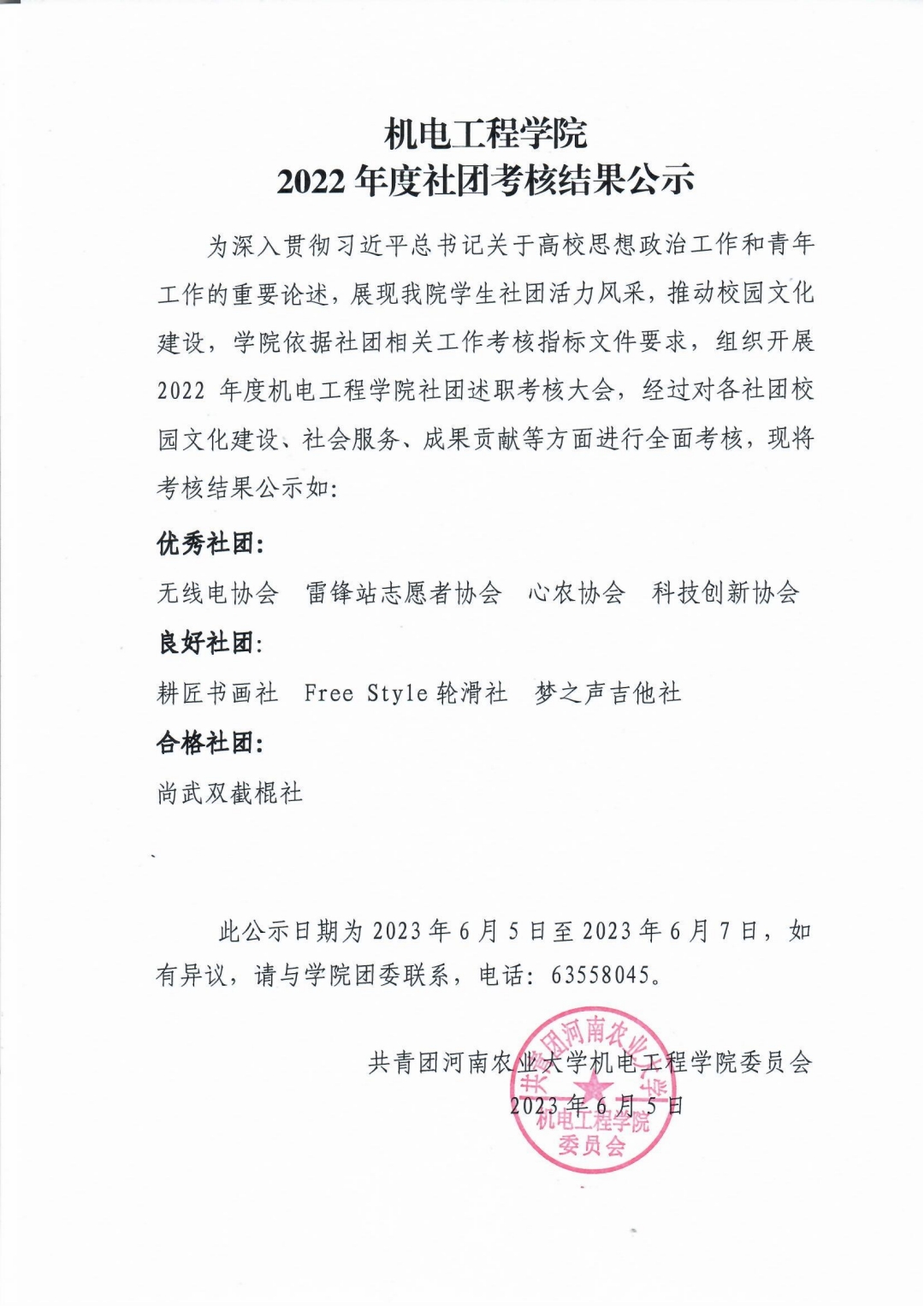为深入贯彻习近平总书记关于高校思想政治工作和青年工作的重要论述,展现新葡京娱乐城App 学生社团活力风采,推动校园文化建设,新葡京娱乐城App 依据社团相关工作考核指标文件要求,组织开展2022年度新葡京娱乐城App 社团述职考核大会,经过对各社团校园文化建设、社会服务、成果贡献等方面进行全面考核,现将考核结果公示如: