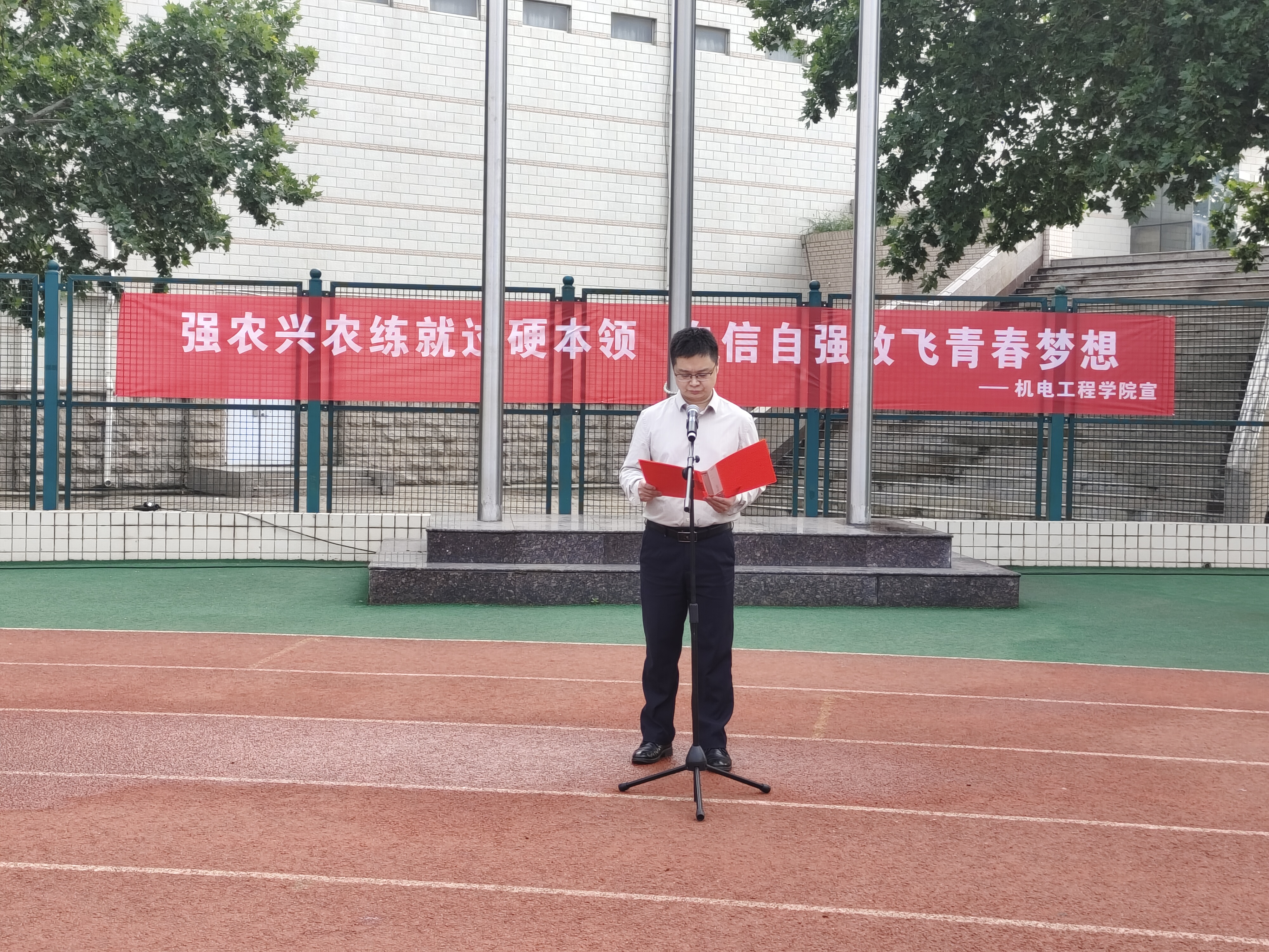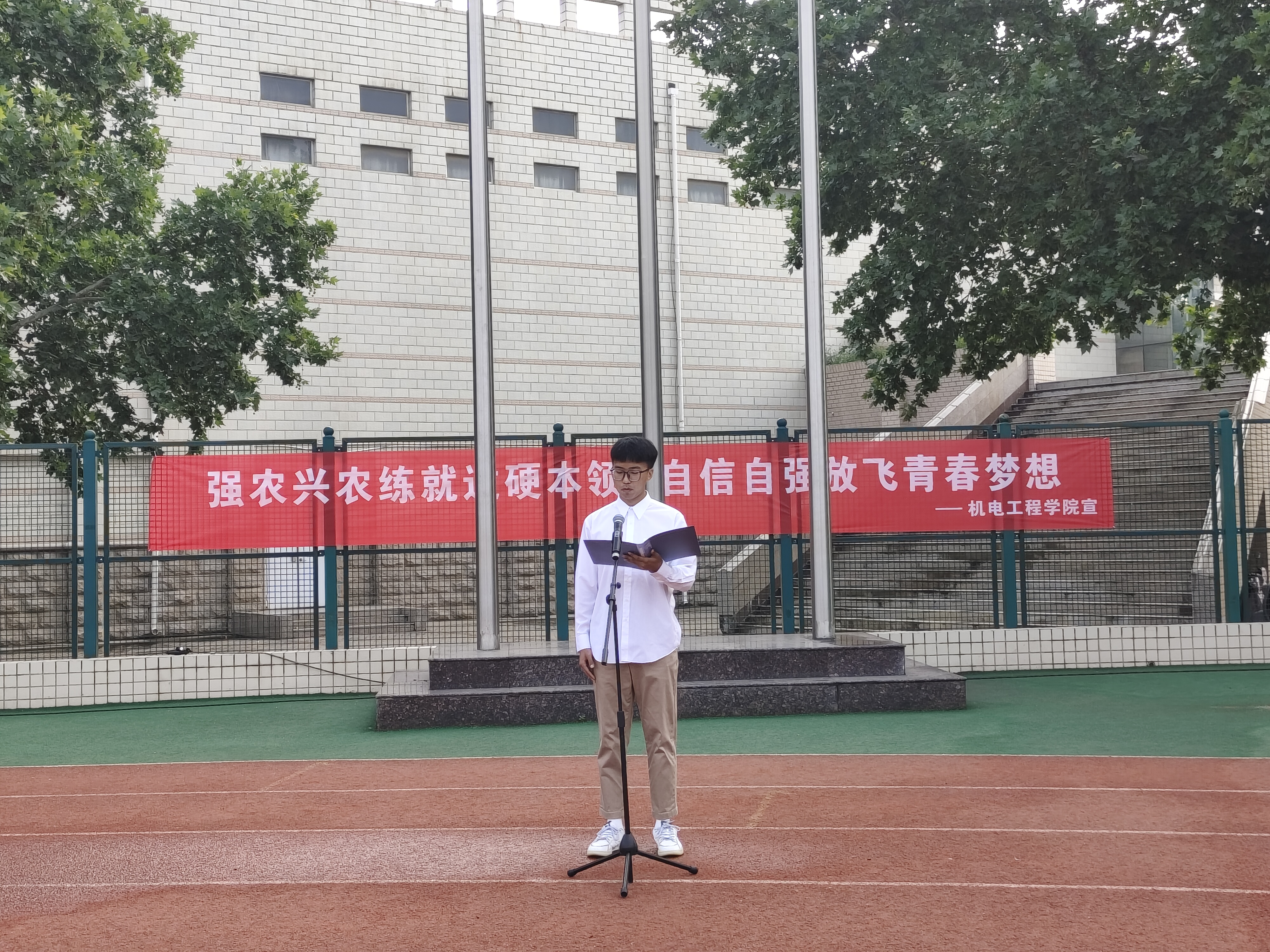 在文化路校区操场举行“强农兴农练就过硬本领,自信自强放飞青春梦想”升国旗仪式。院领导老师、辅导员、青马班成员及21、22级全体同学参加此次仪式,仪式由宋晶主持。