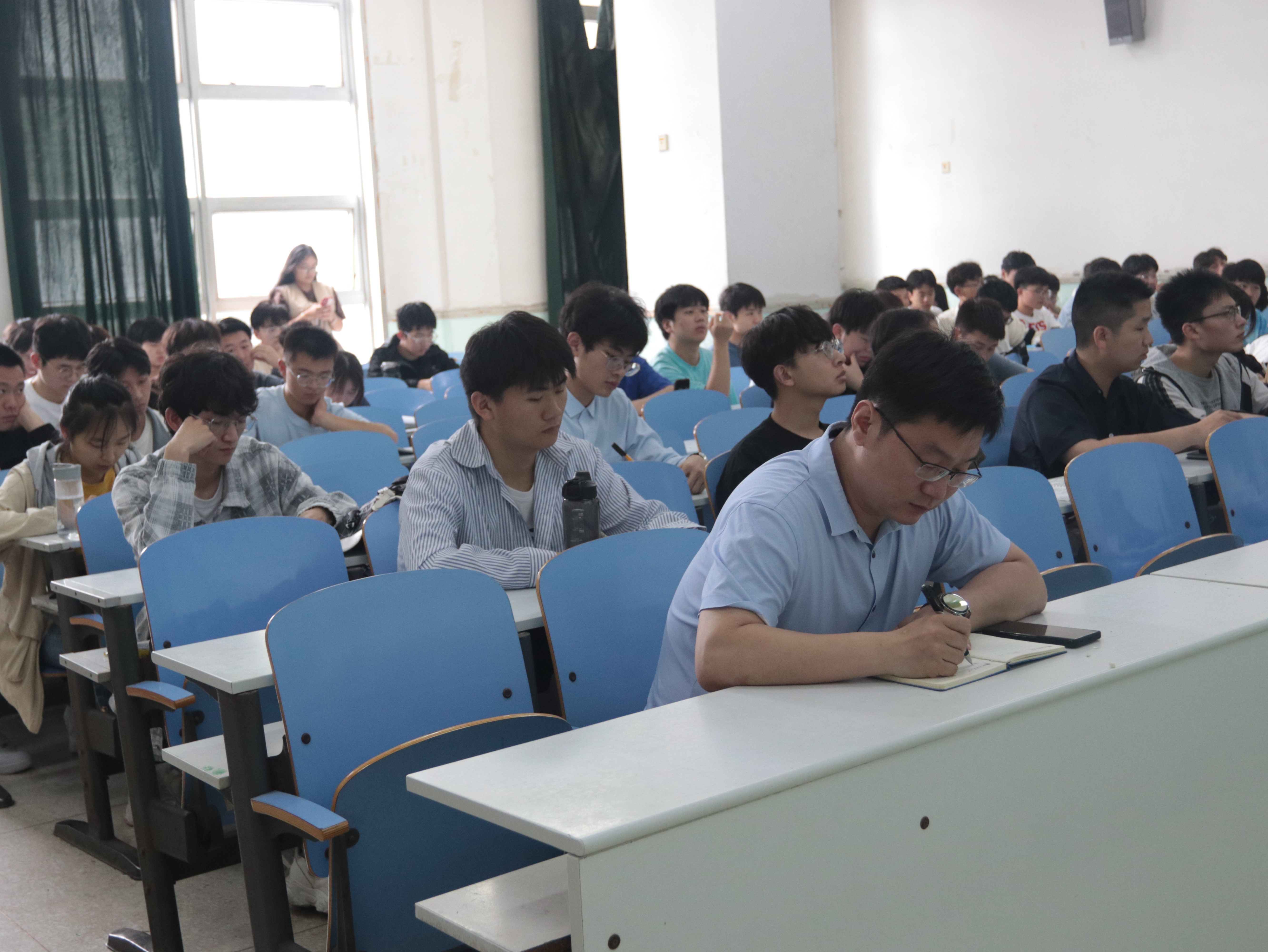 于文化路校区工程楼102教室召开毕业生离校工作会暨征兵入伍动员会,院团委书记黄笑,团委副书记王晓楠、胡亭亭,年级辅导员孙改革出席会议。全体班长支书及部分学生干部参加会议。