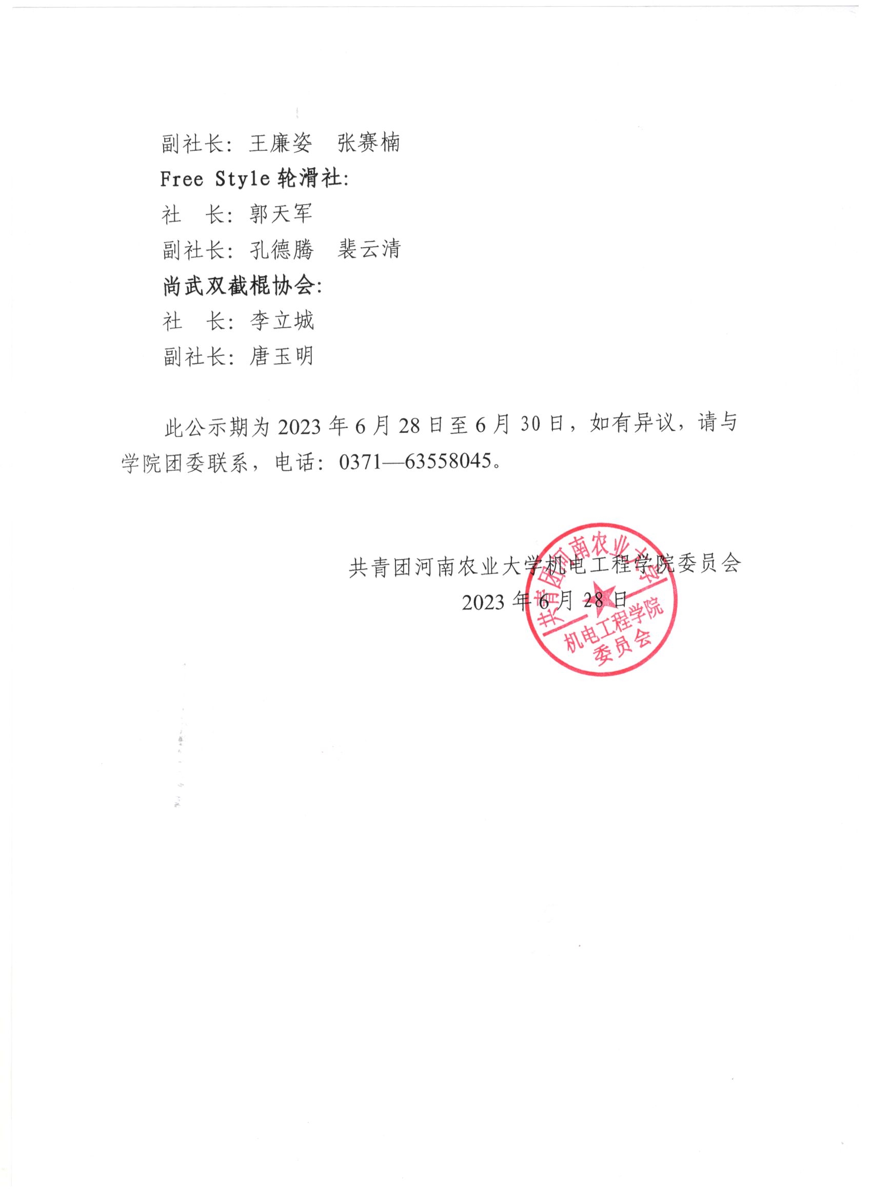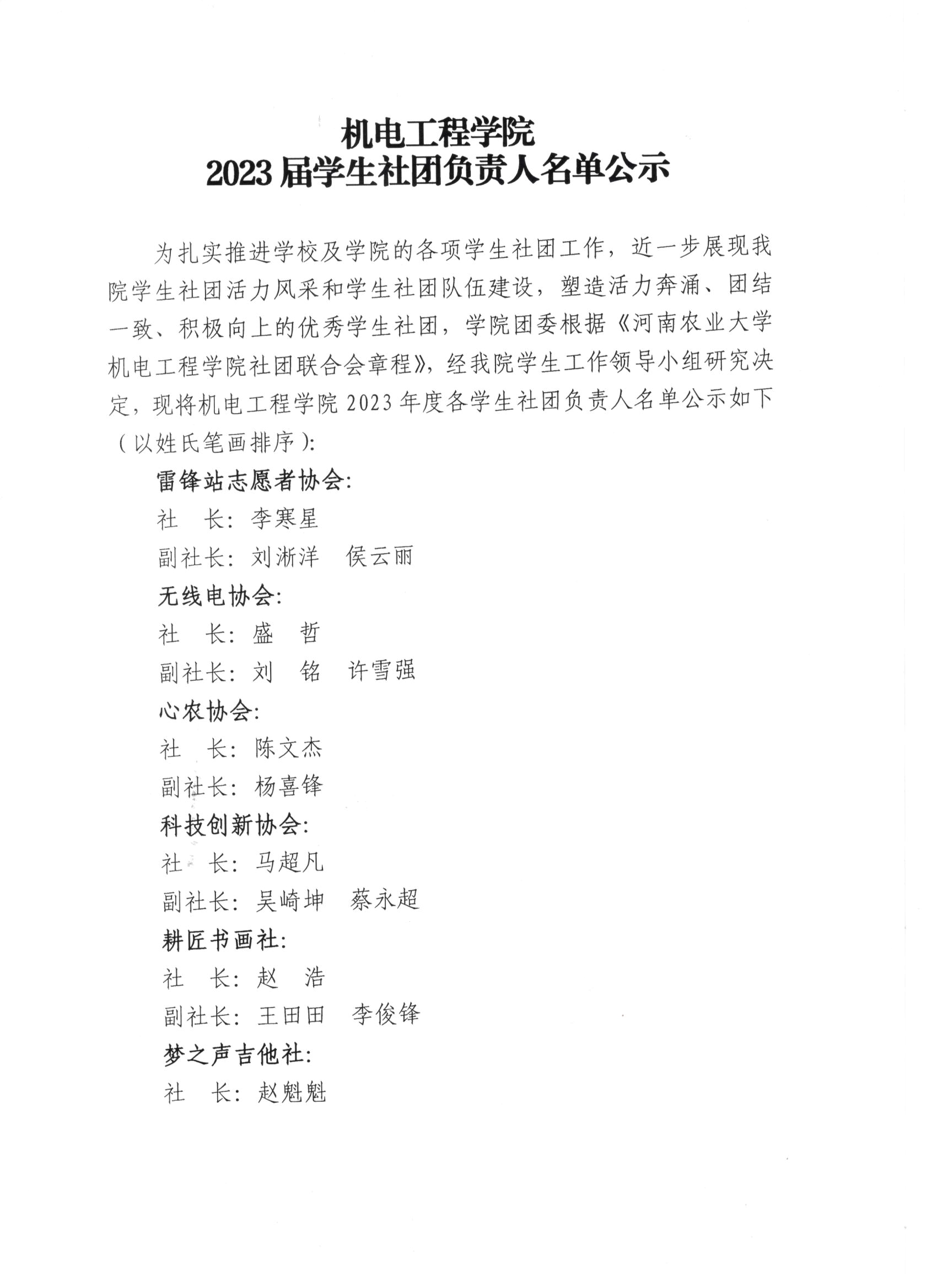 新葡京娱乐城App 2023届学生社团负责人名单公示