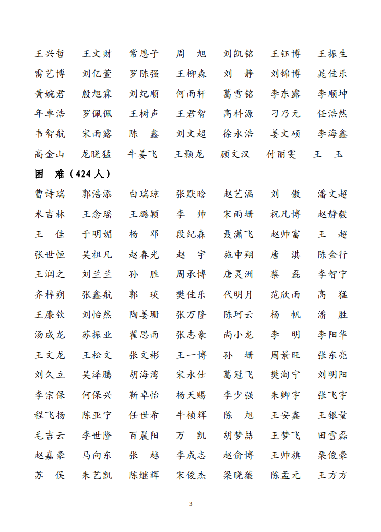 根据《教育部等六部门关于做好家庭经济困难学生认定工作的指导意见》《河南省家庭经济困难学生认定工作实施办法》和《新葡京娱乐城App 家庭经济困难学生认定办法(修订)》精神,新葡京娱乐城App 认真开展贫困认定工作,结合各学生班推荐报备情况,经新葡京娱乐城App 学生工作领导小组和资助工作领导小组研究生审核,最终确定2023-2024 学年家庭经济困难学生认定名单,现公示如下: