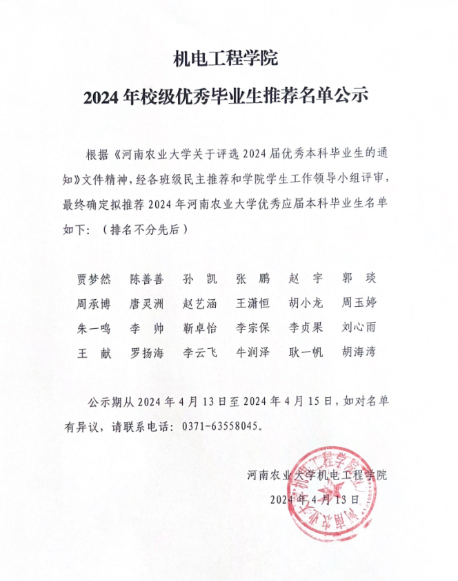 ;根据《新葡京娱乐城App 关于评选2024届优秀本科毕业生的通知》文件精神,经各班级民主推荐和新葡京娱乐城App 学生工作领导小组评审,最终确定拟推荐2024年新葡京娱乐城App 优秀应届本科毕业生名单如下:(排名不分先后)