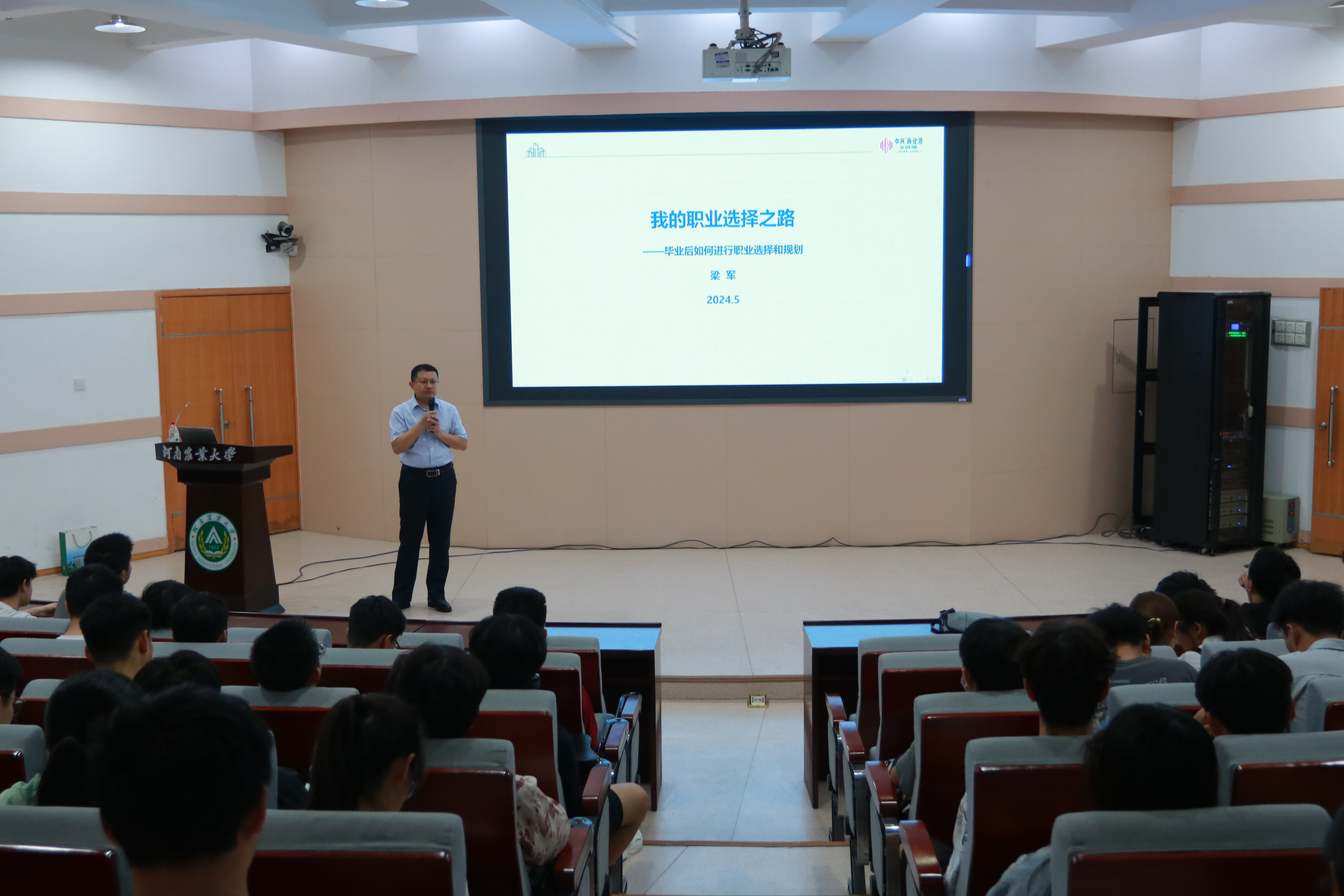梁军通过播放小米员工邴佳宝的演讲视频引出此次报告主题《我的职业选择之路》。他围绕加强学习能力、挖掘做事的潜力、提升沟通交流能力、把握机遇、注重形象共五个方面,为师生分享了自己20余年的奋斗故事和工作心得,激励新葡京娱乐城App