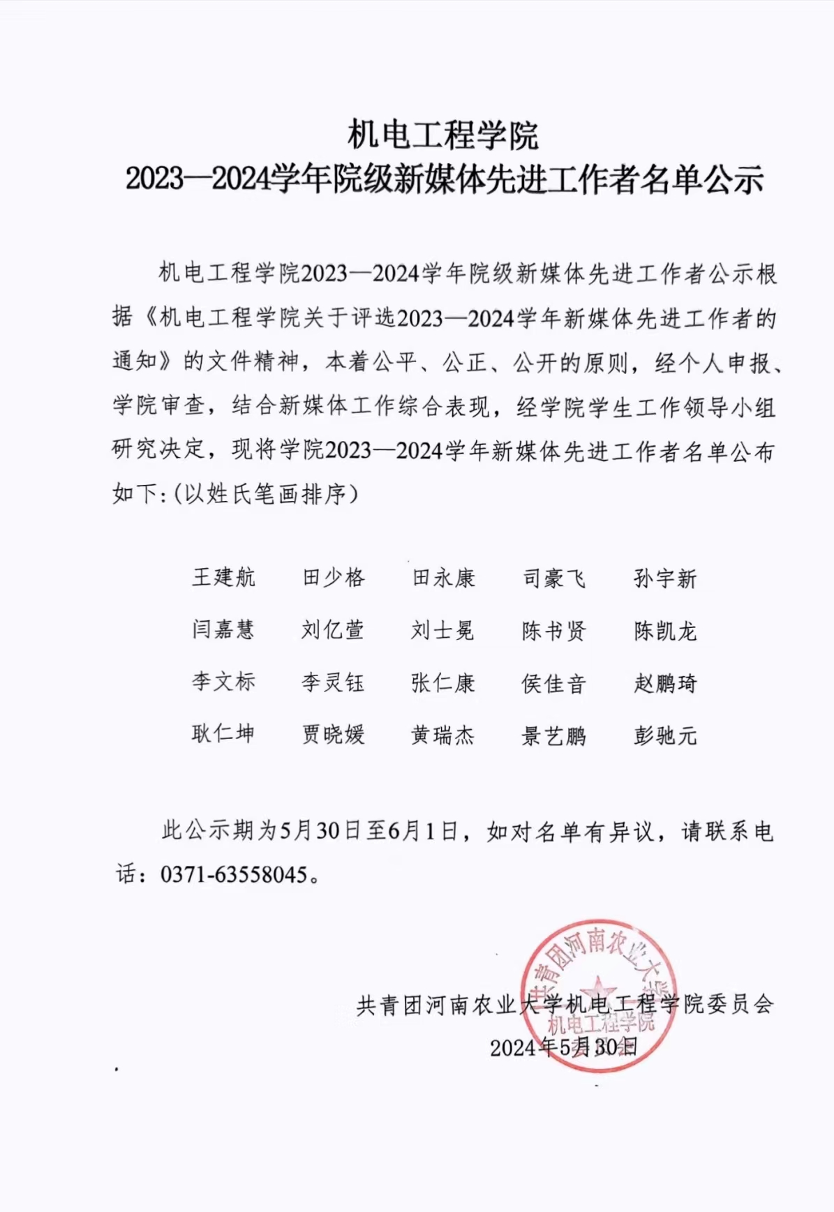 新葡京娱乐城App 2023-2024学年院级新媒体先进工作者名单公示