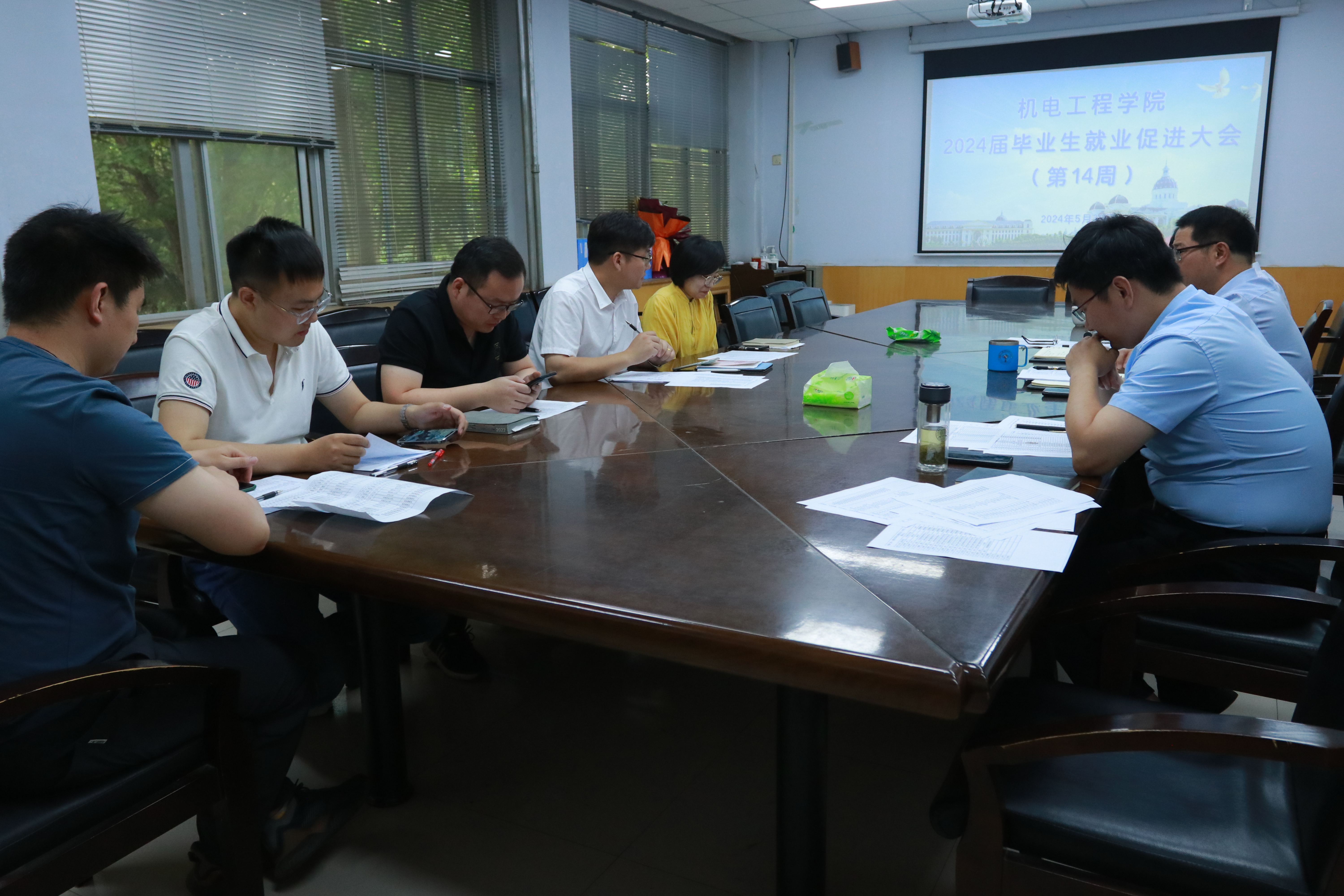于文化路校区15号楼二楼会议室召开2024届毕业生就业促进大会。院党委书记李世欣,院长胡建军,党委副书记宋晶,团委书记黄笑,年级辅导员孙改革,新葡京娱乐城App