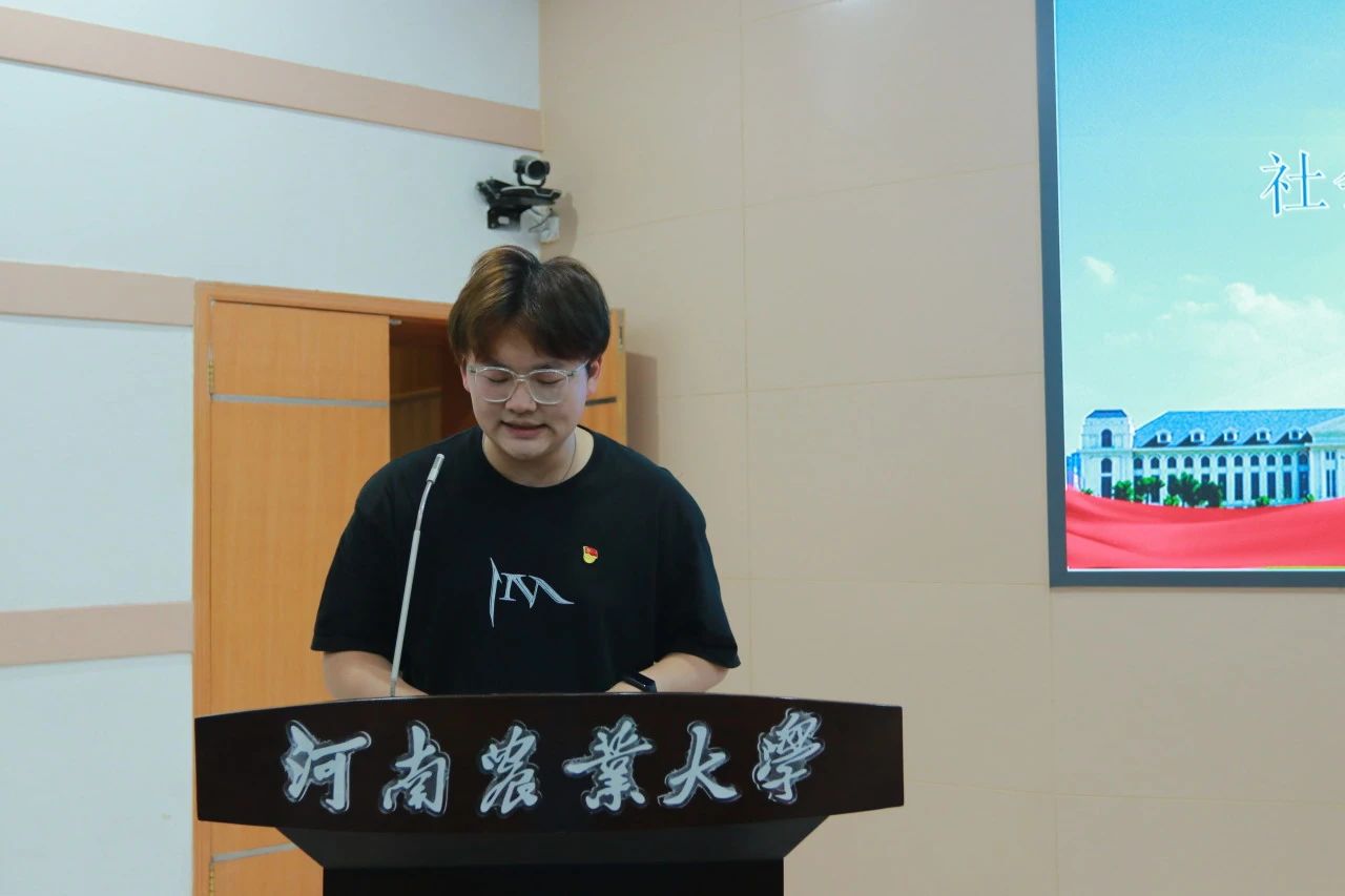社会实践启动仪式结束,随后进行学生组织换届大会。首先由2023届各学生组织负责人依次上台做述职总结发言。