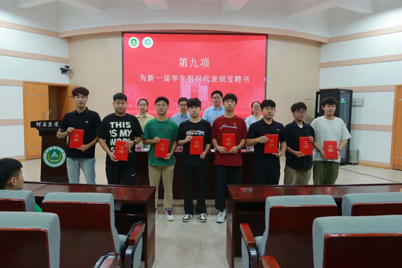 领导老师为新一届学生组织代表颁发聘书并一同合影。