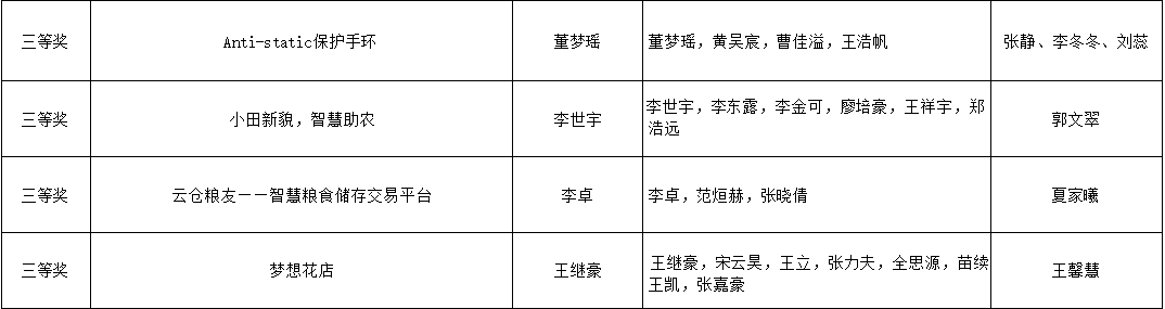 此次大赛中,新葡京娱乐城App 高度重视,精心组织,广泛动员,充分发挥了在推动创新创业型人才培养、深化新葡京娱乐城App 素质教育等方面的积极作用,体现了鲜明的导向性、示范性和群众性。本着公平、公正、公开的原则,新葡京娱乐城App 组织有关专家和老师对参赛作品进行评审和指导,经过严格评审,最终评选出一等奖5名,二等奖8名,三等奖10名。现将获奖名单公示如下: