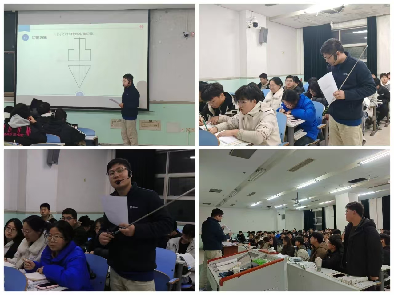 结合会前收集到学生提出的问题,吕志军针对关键制图知识展开讲解,他采用互动式教学,引入经典例题,激发学生思考。同学们积极参与并纷纷提出见解与疑问。吕志军的精准教学和专业指导,有效提升了学生知识掌握水平和对《工程制图》的学习热情。