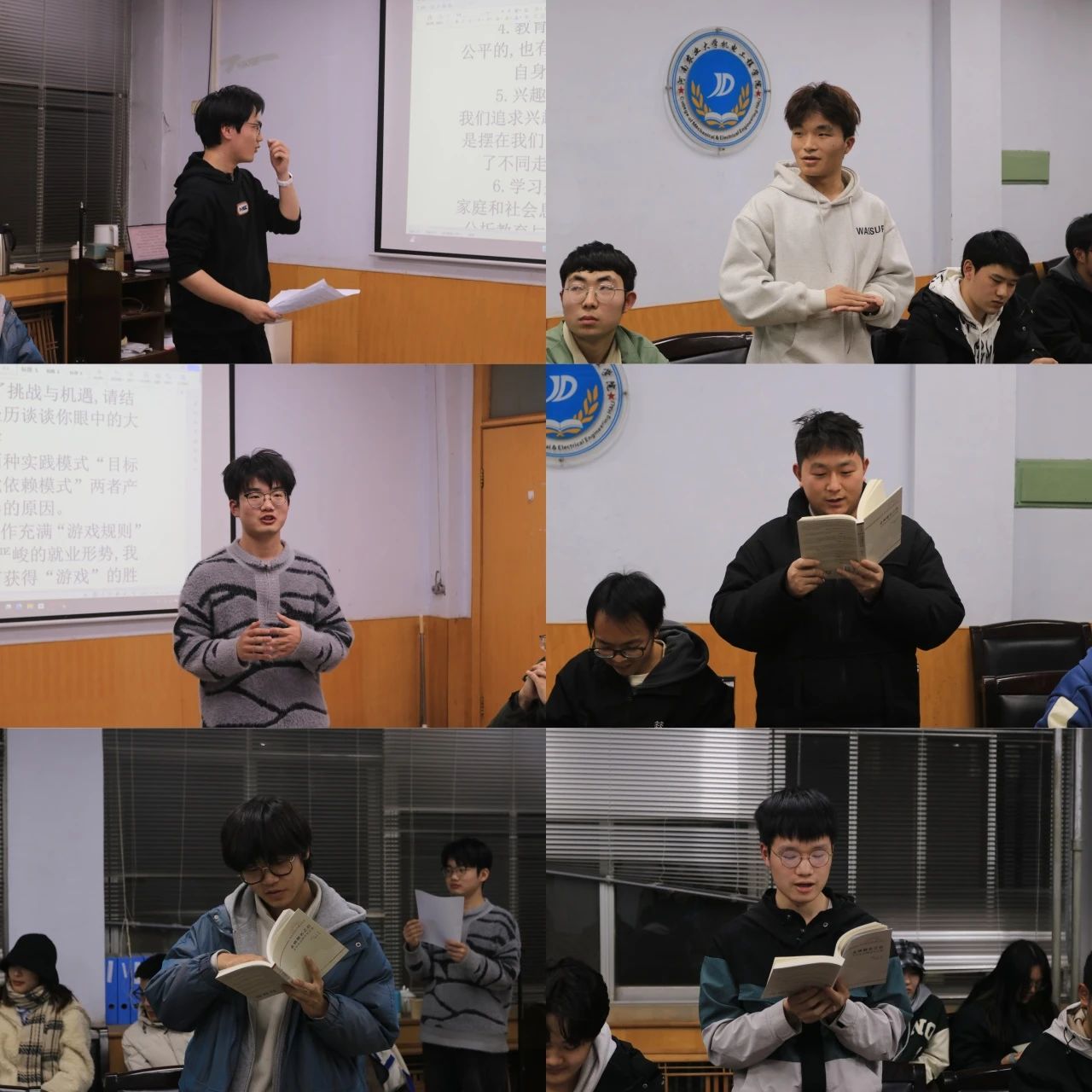 在问题交流环节中,同学们通过快速传递书籍的方式进行发言。传递停止时,持书同学依据问题结合书中理论与自身规划,就职业规划、学业与兴趣平衡等话题分享见解。同学们从不同视角剖析大学生出路的分化现象,现场气氛热烈,大家在交流中相互启发。